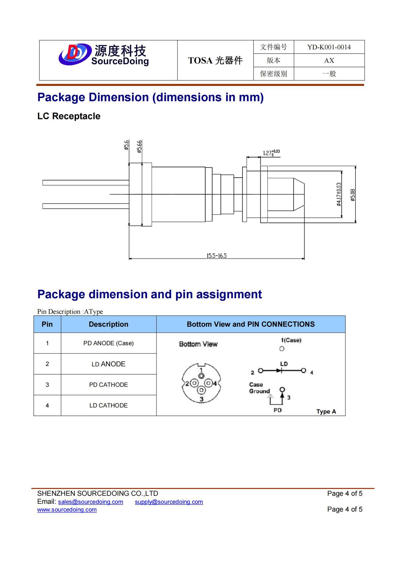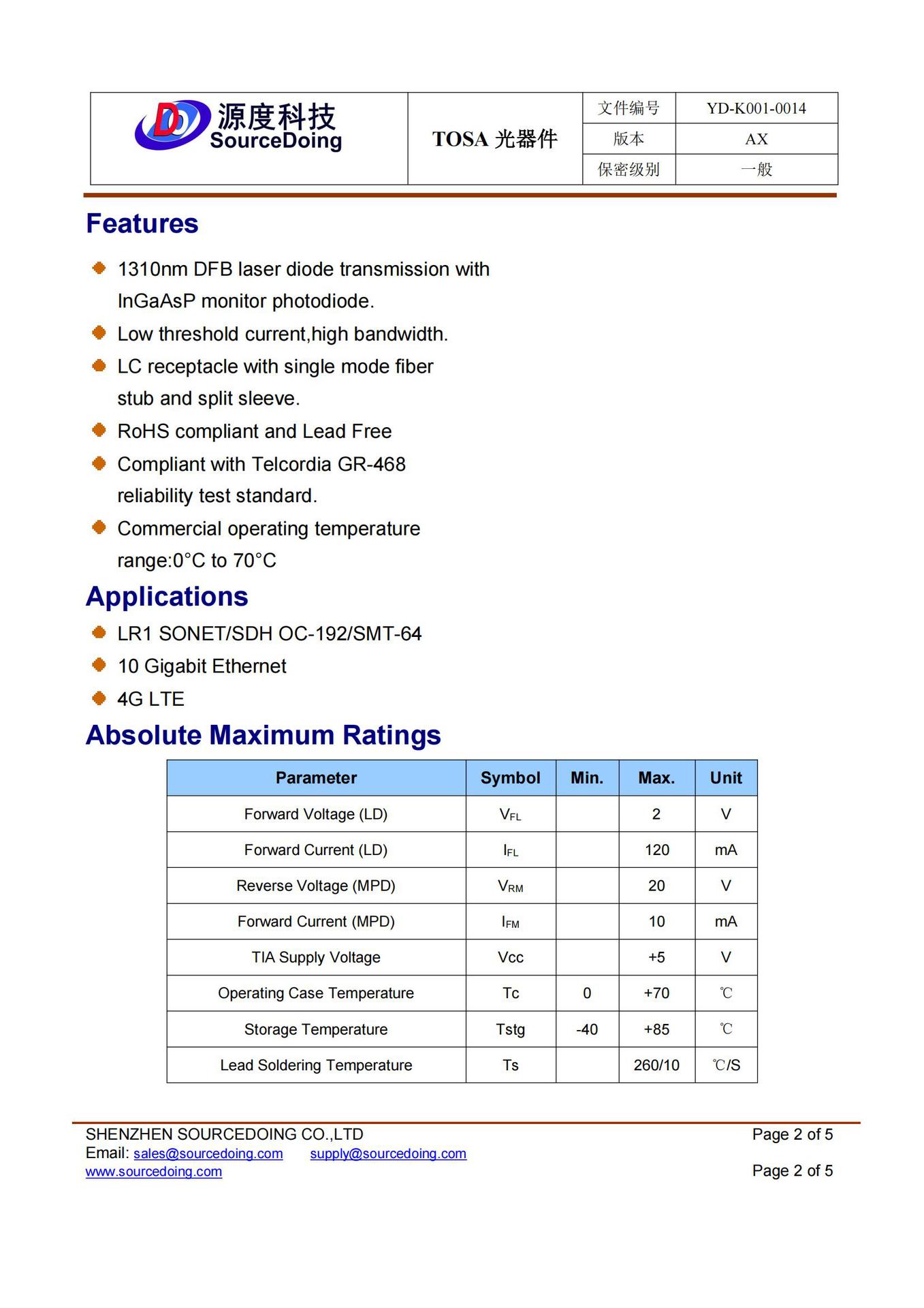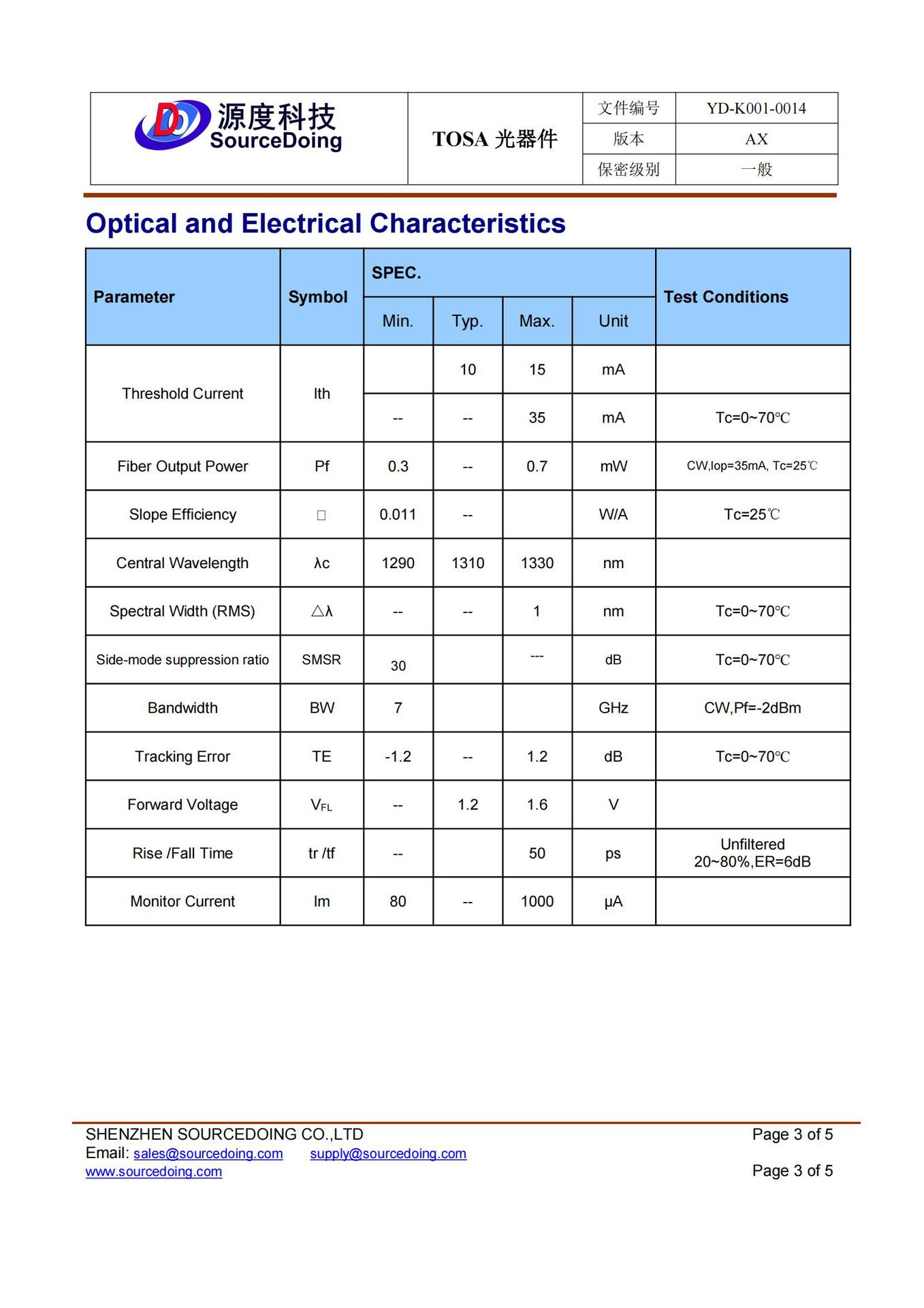 Diodo láser TOSA LC DFB 10G de 1310 nm con fotodiodo de monitoreo InGaAsP
