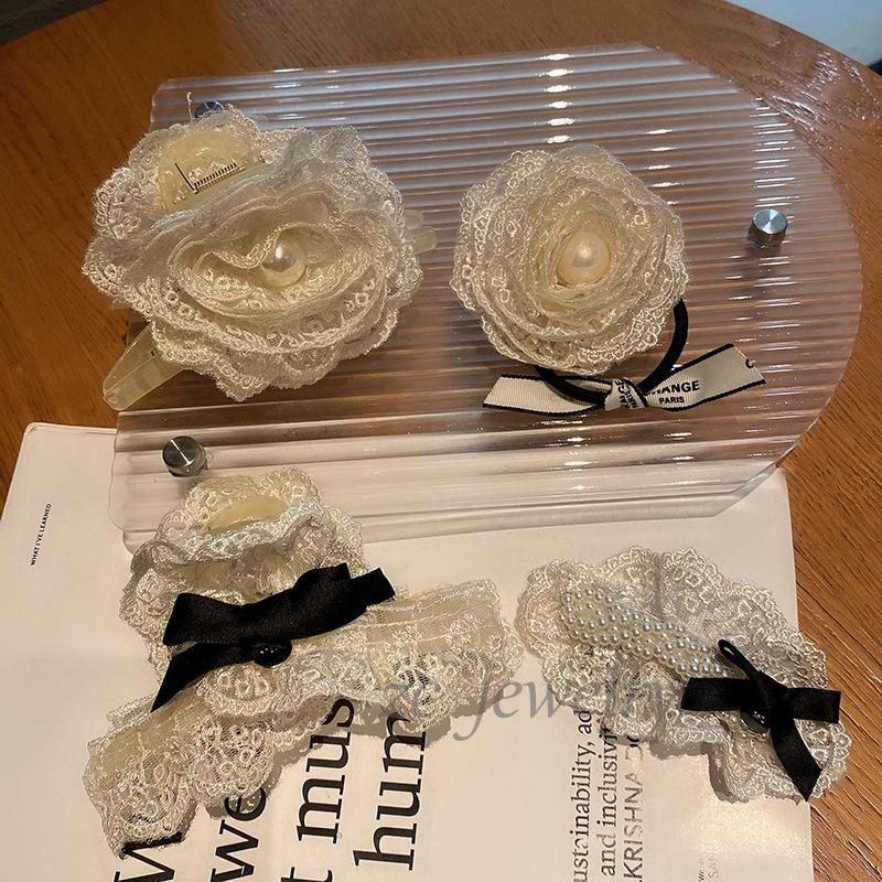 Lace pearl rubber band 8cm, Lace pearl grip clip 13cm, Lace pearl bb clip 10cm, Lace bow grip clip 13cm