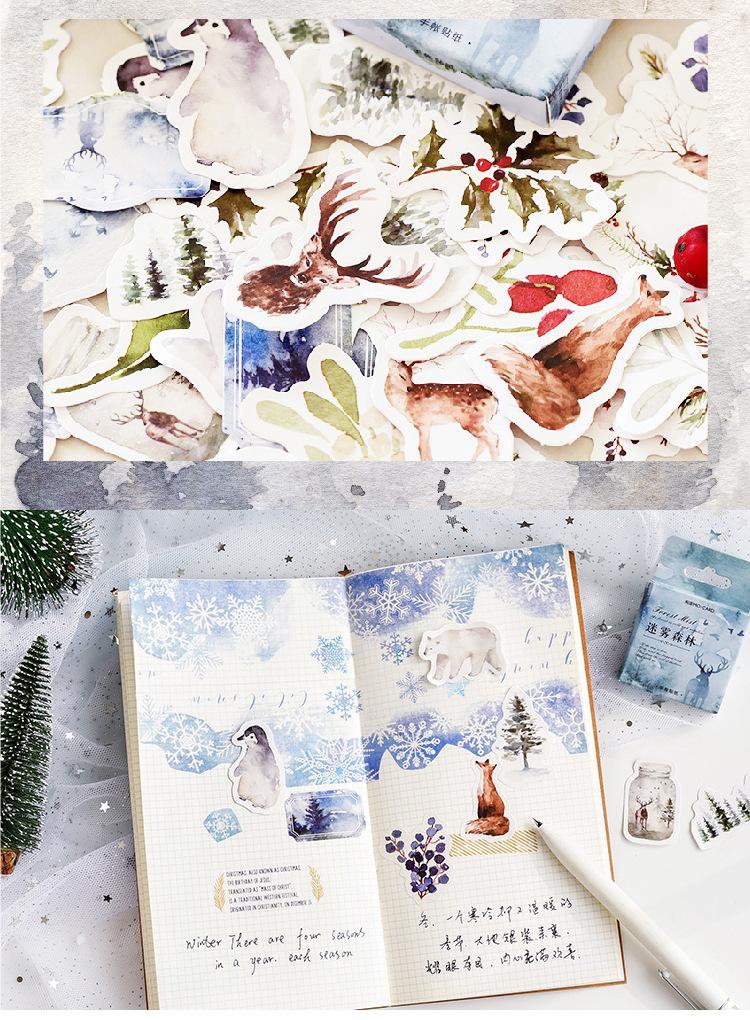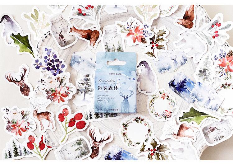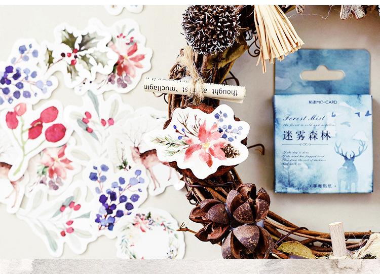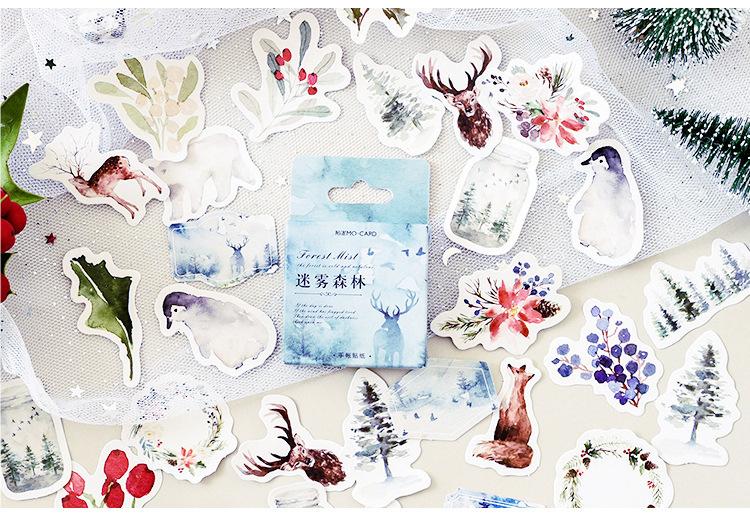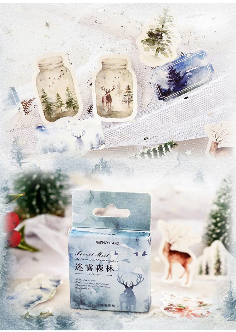 Pegatina en caja Mo Mo, pegatina adhesiva de bosque de niebla, pegatina de mano, cuenta, álbum de fotos, decoración DIY, pegatina de sello