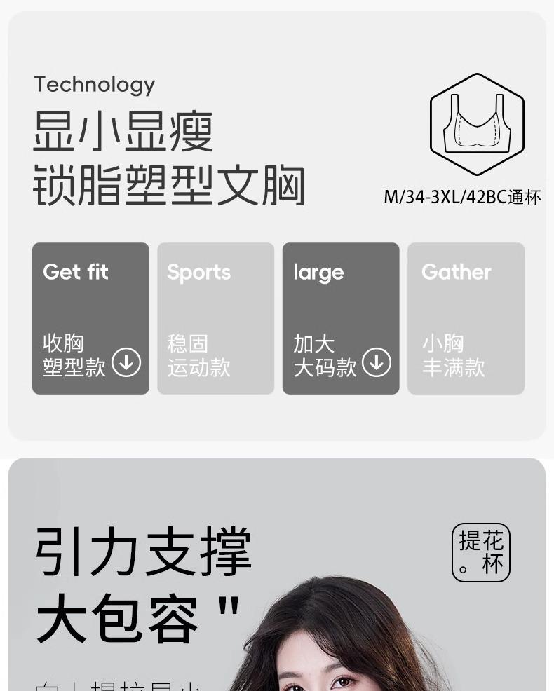 Gather, Traceless, Breathable, Upper support, Adjustable type, Comfortable, Side closure, Breast collection, B...