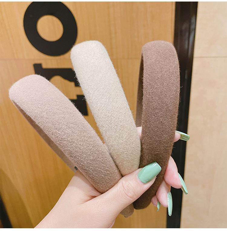 Diadema de color otoño e invierno ~ diadema realzada con esponja de tela súper cómoda ins Accesorios coreanos para el cabello castaño para mujer presión para el cabello mareaDiadema para mujer otoño e invierno accesorios para el cabello celebridad de internet diadema de esponja de cráneo alto que reduce la edad diadema ancha versátil con horquilla de presión lateral tocado