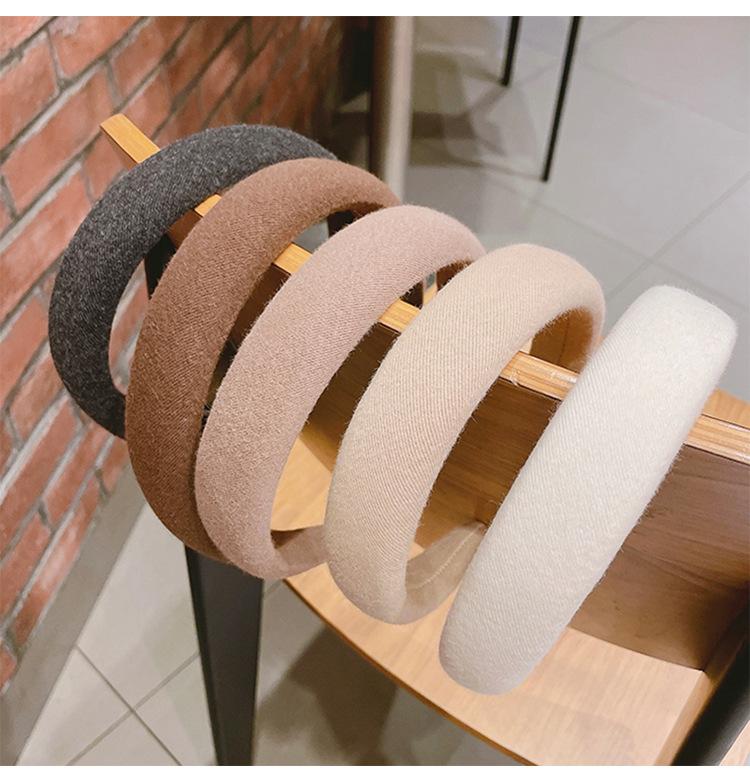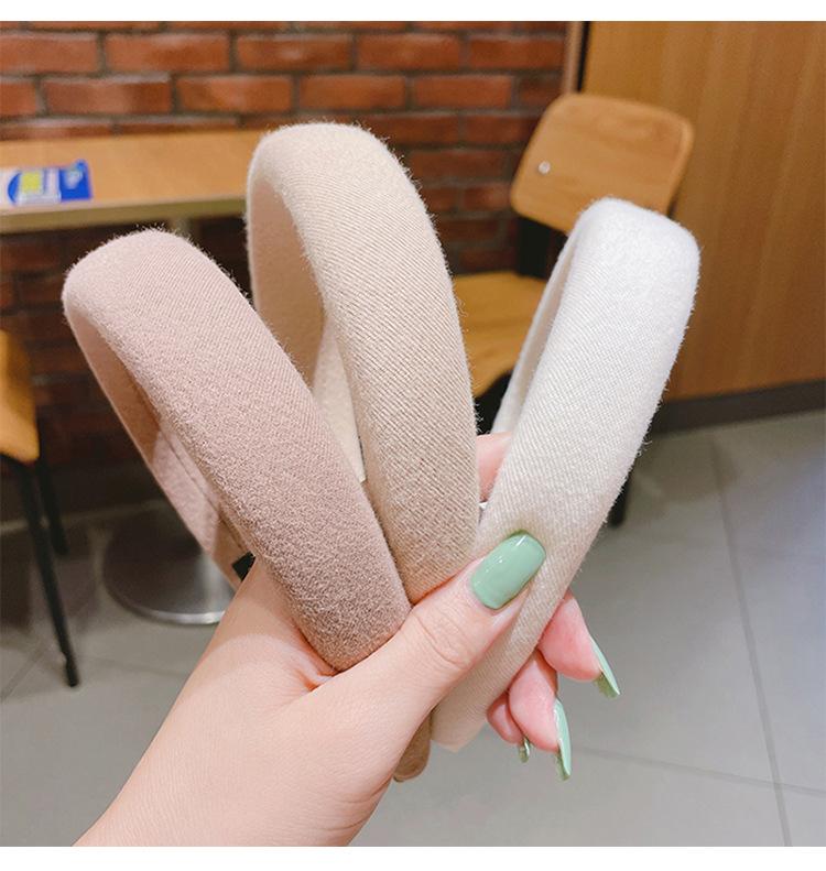 Celebridad coreana caqui diadema de esponja de ala ancha parte superior alta del cráneo nicho diadema para presionar el cabello versátil para salir para mostrar la cara de la niñaCorea del Sur Dongdaemun diadema sencilla de color crema beige albaricoque de alta calidad para salir, diadema para presionar el cabello para mujer