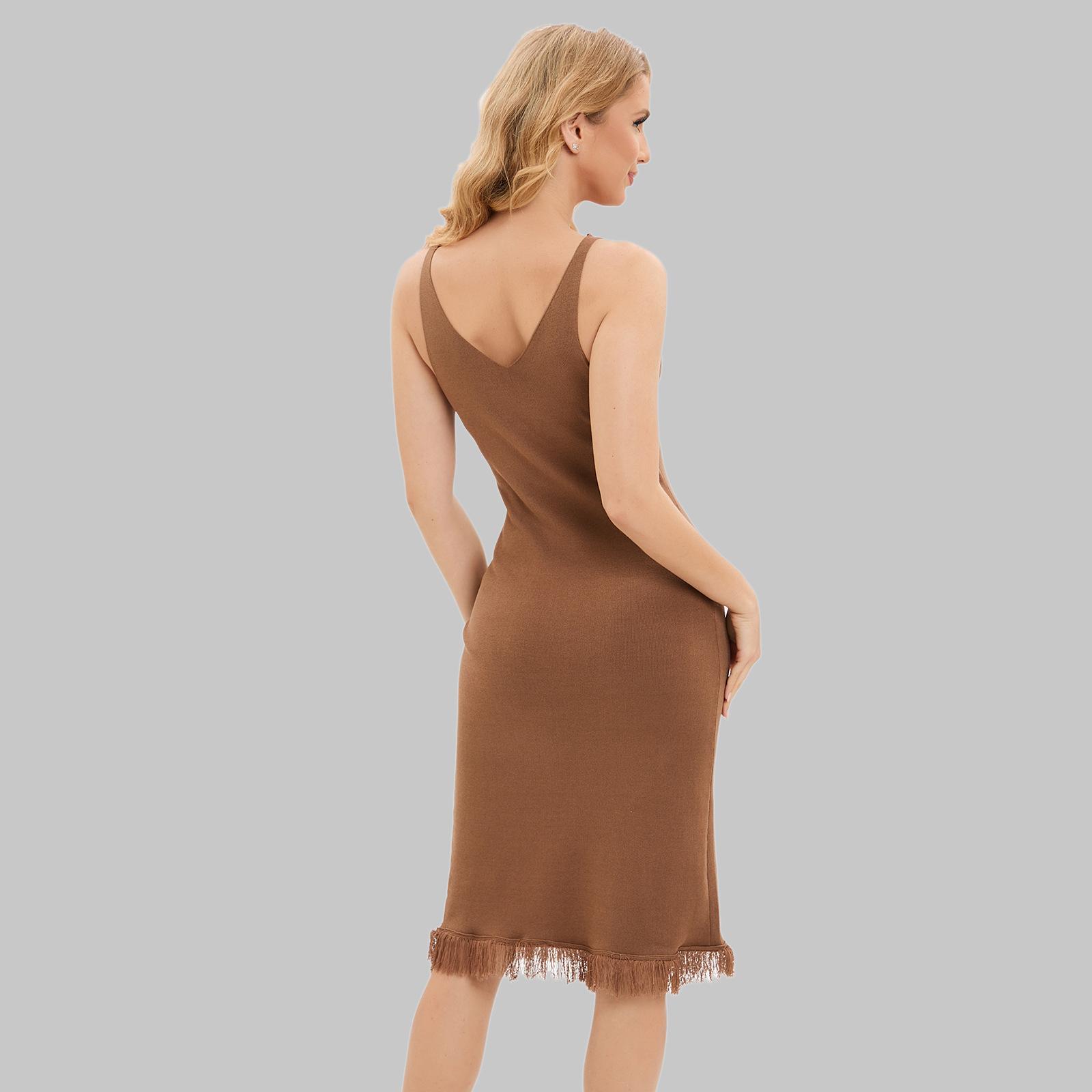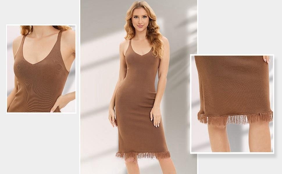 2025 Verano Nuevo Estilo Europeo y Americano Transfronterizo Ajustado Cuello en V Borla Tirantes Vestido para Mujer Delgado Sin Mangas Ropa Interior y Ropa Exterior