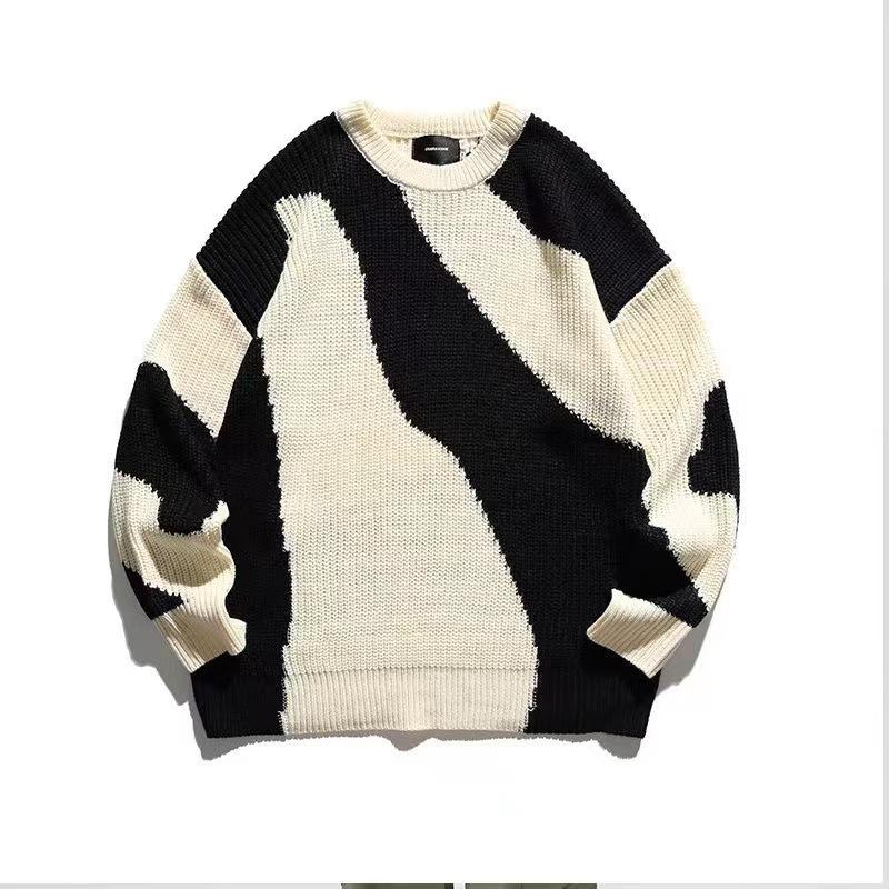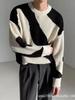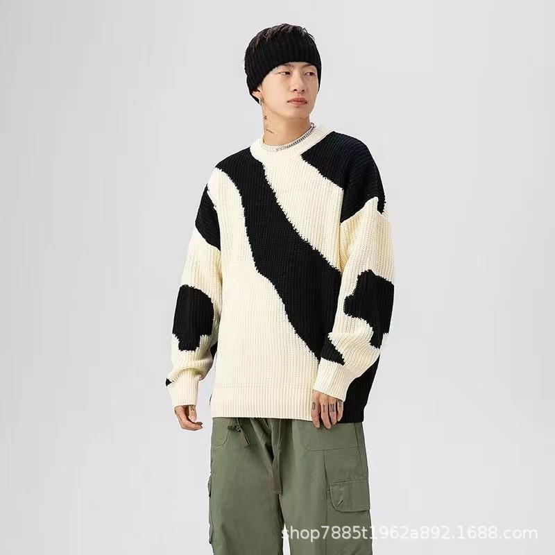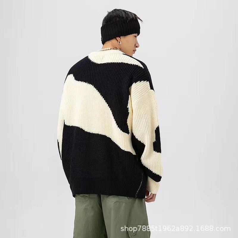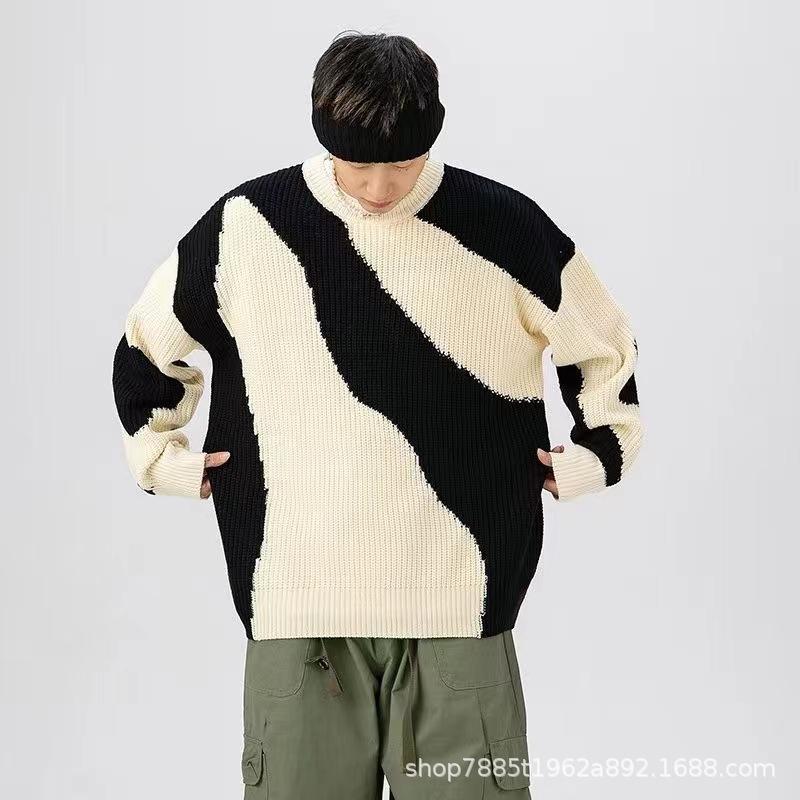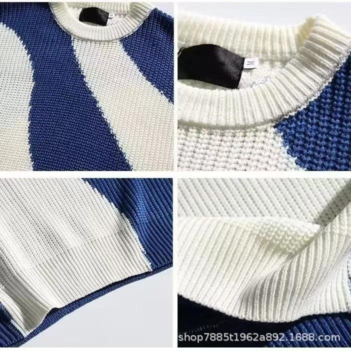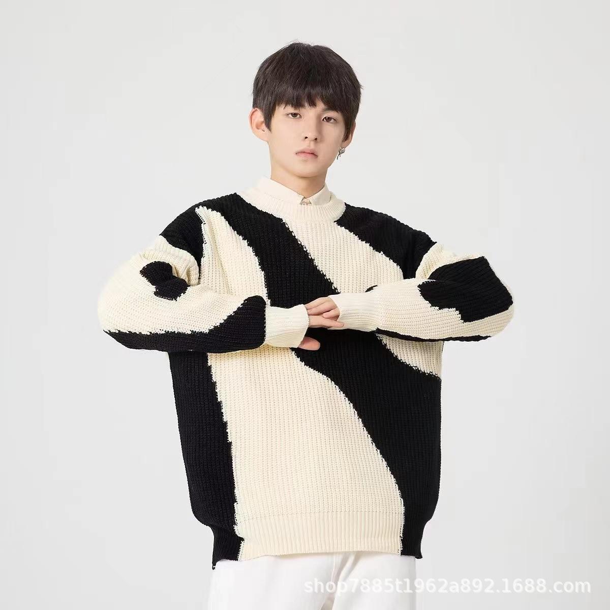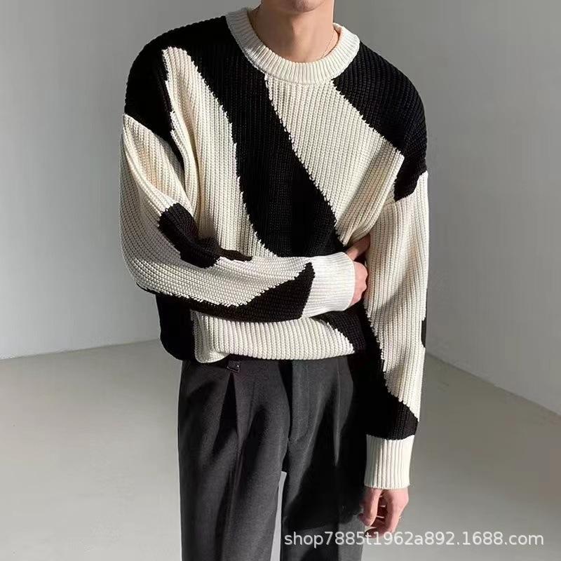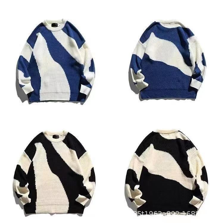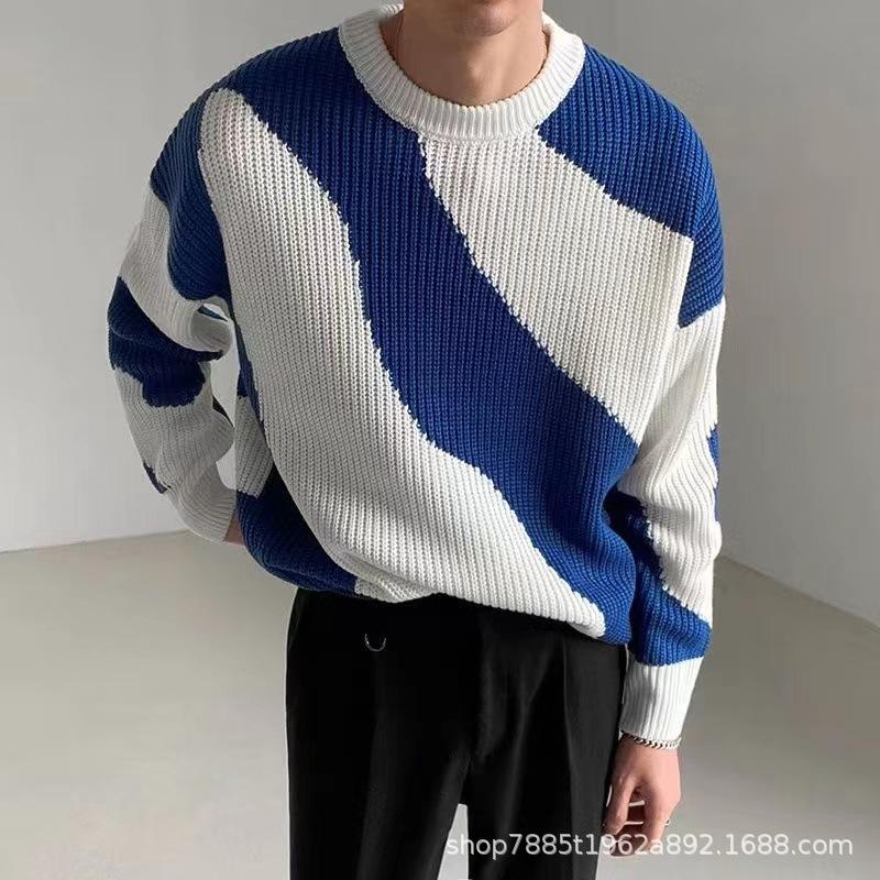Suéter de otoño e invierno para hombres y mujeres, suéter de cuello redondo con contraste de color, nuevo estilo perezoso, suelto, otoño, estilo coreano, top de moda