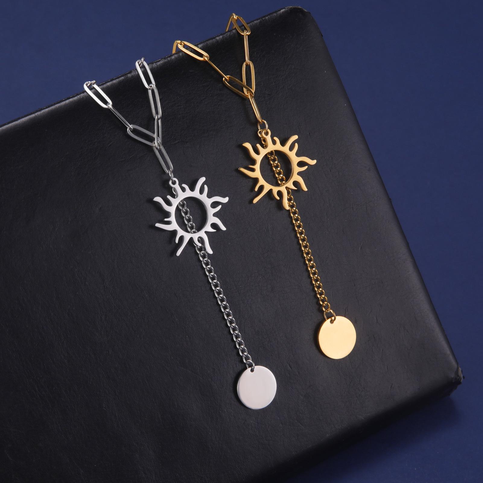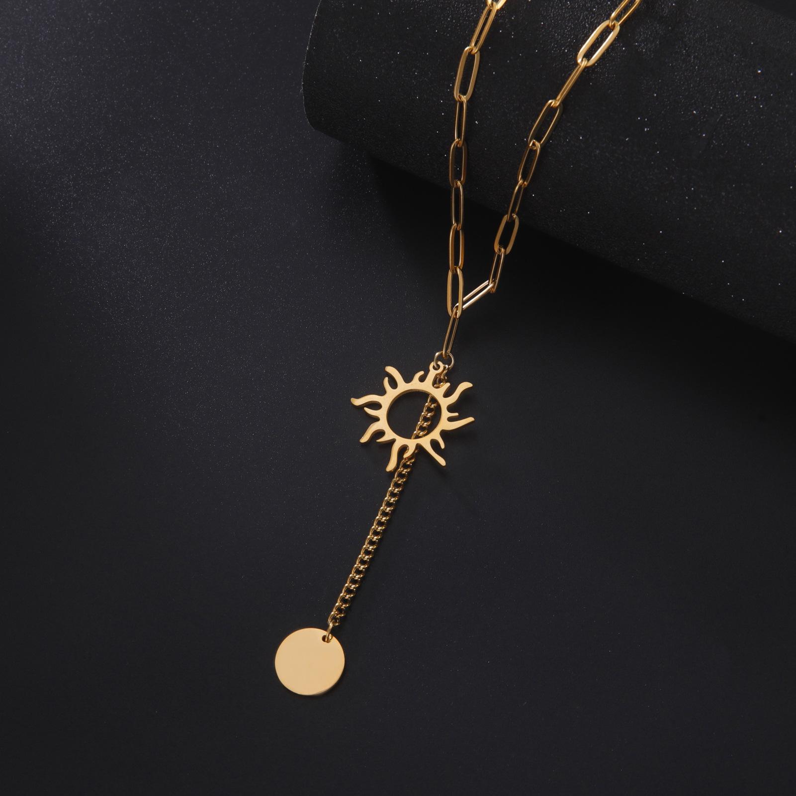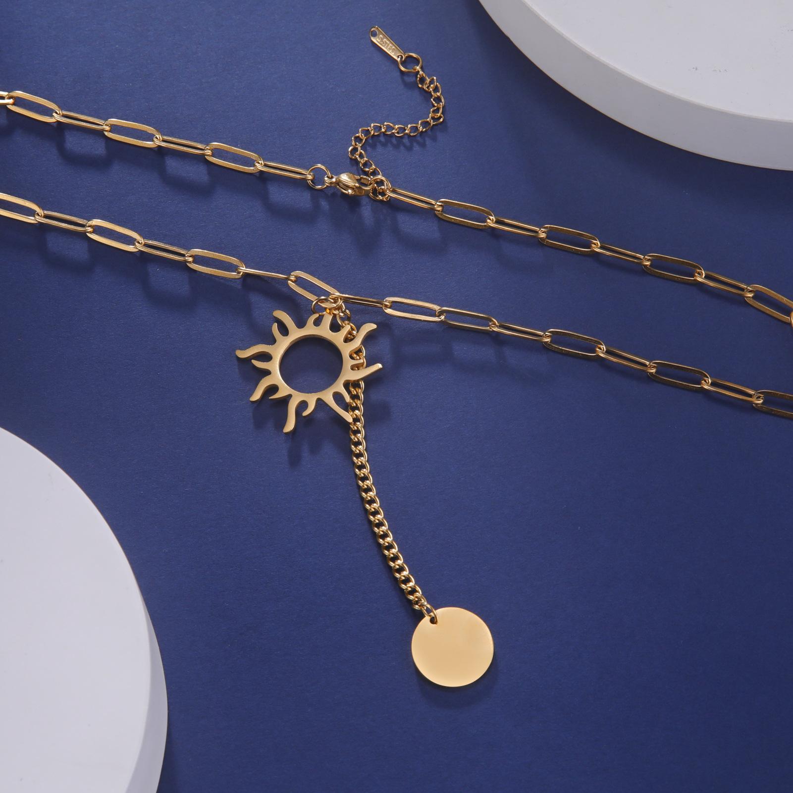 Collar de girasol hueco con borlas y cadena de clavícula, joyería de acero inoxidable chapada en oro de 18 quilates, muy vendido en Europa y Estados Unidos.