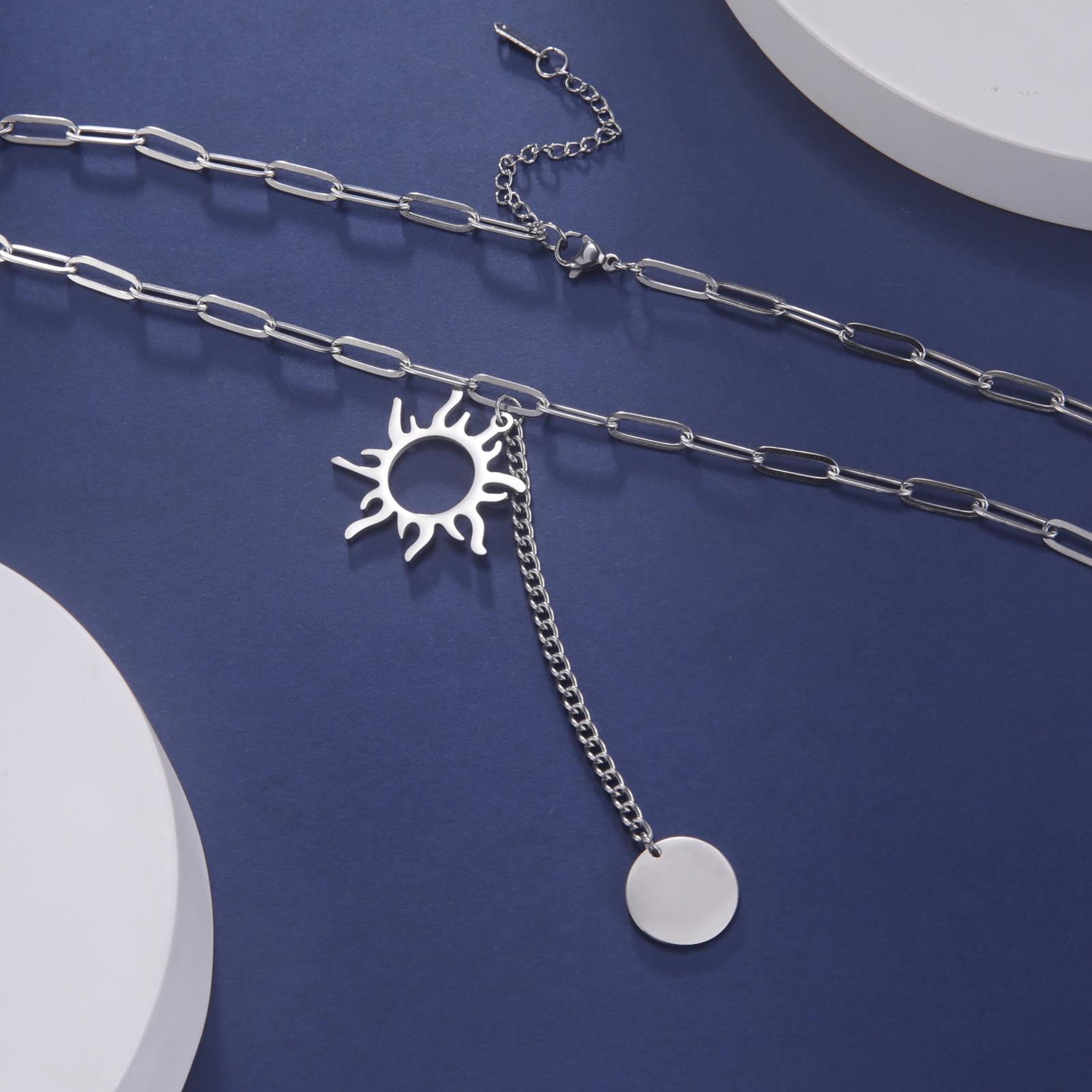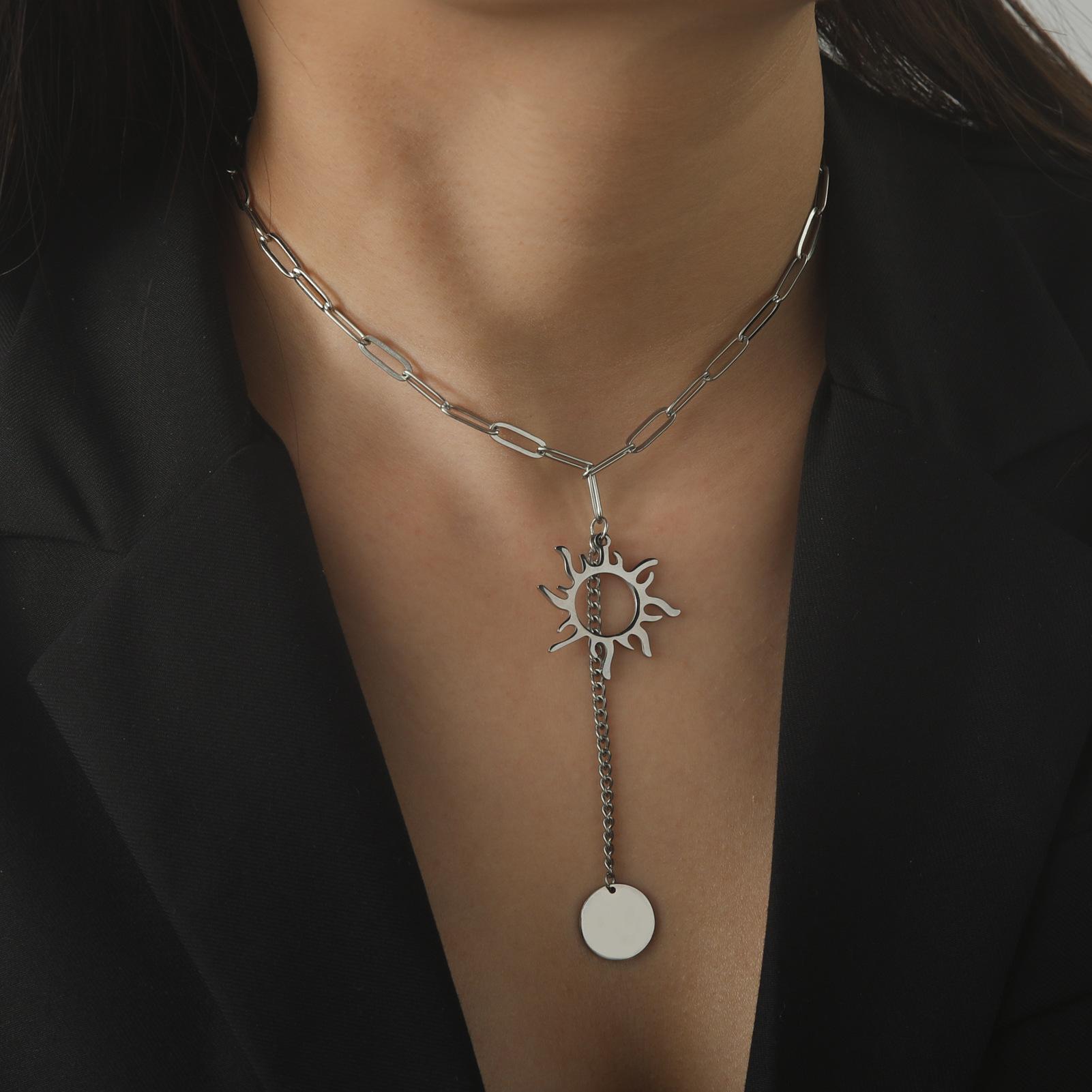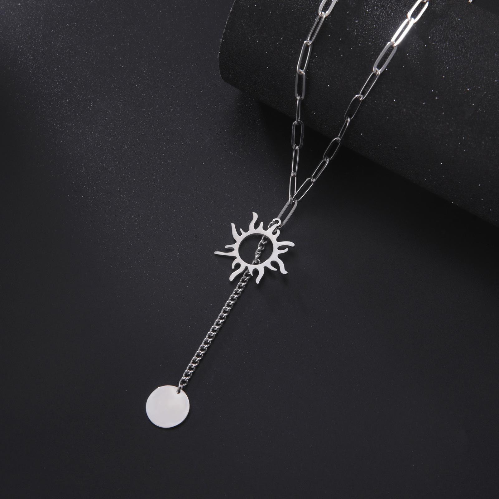 Collar de girasol hueco con borlas y cadena de clavícula, joyería de acero inoxidable chapada en oro de 18 quilates, muy vendido en Europa y Estados Unidos.