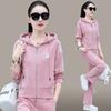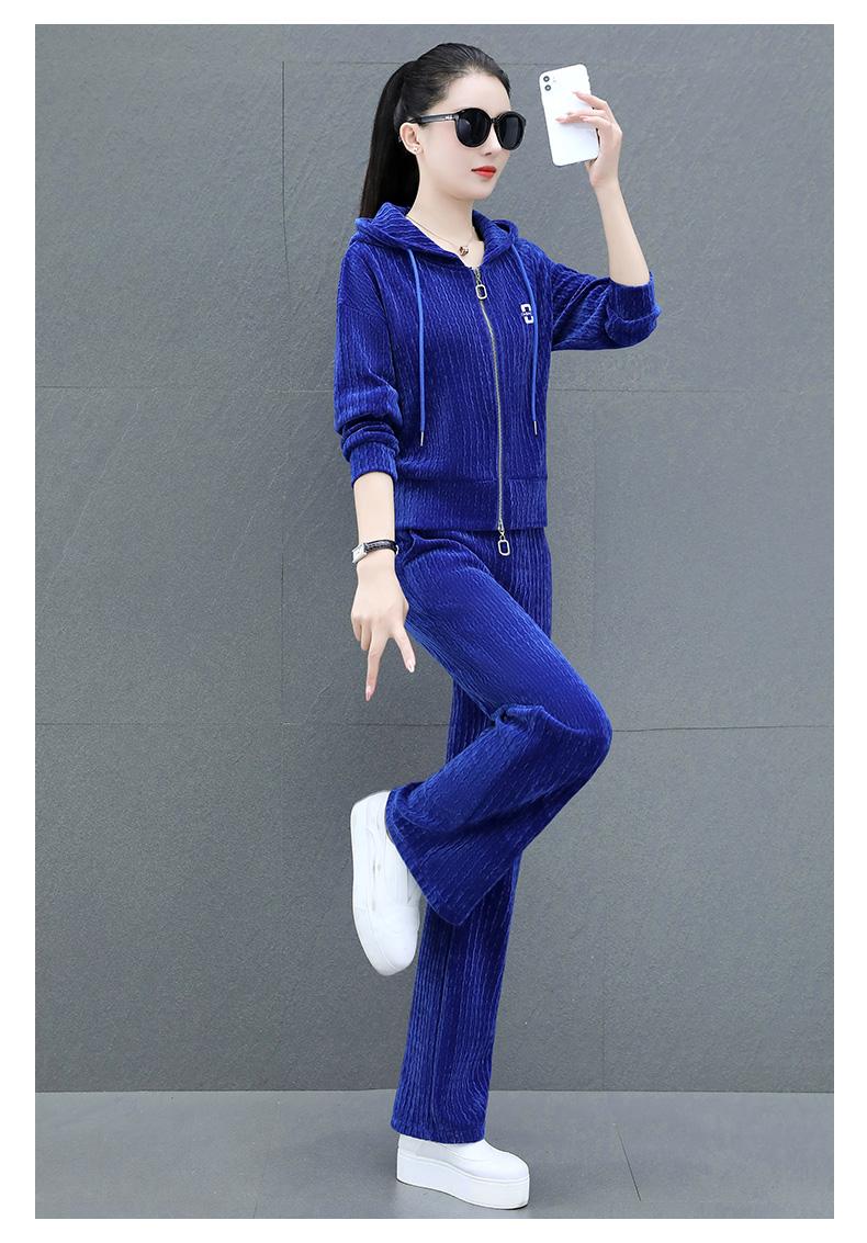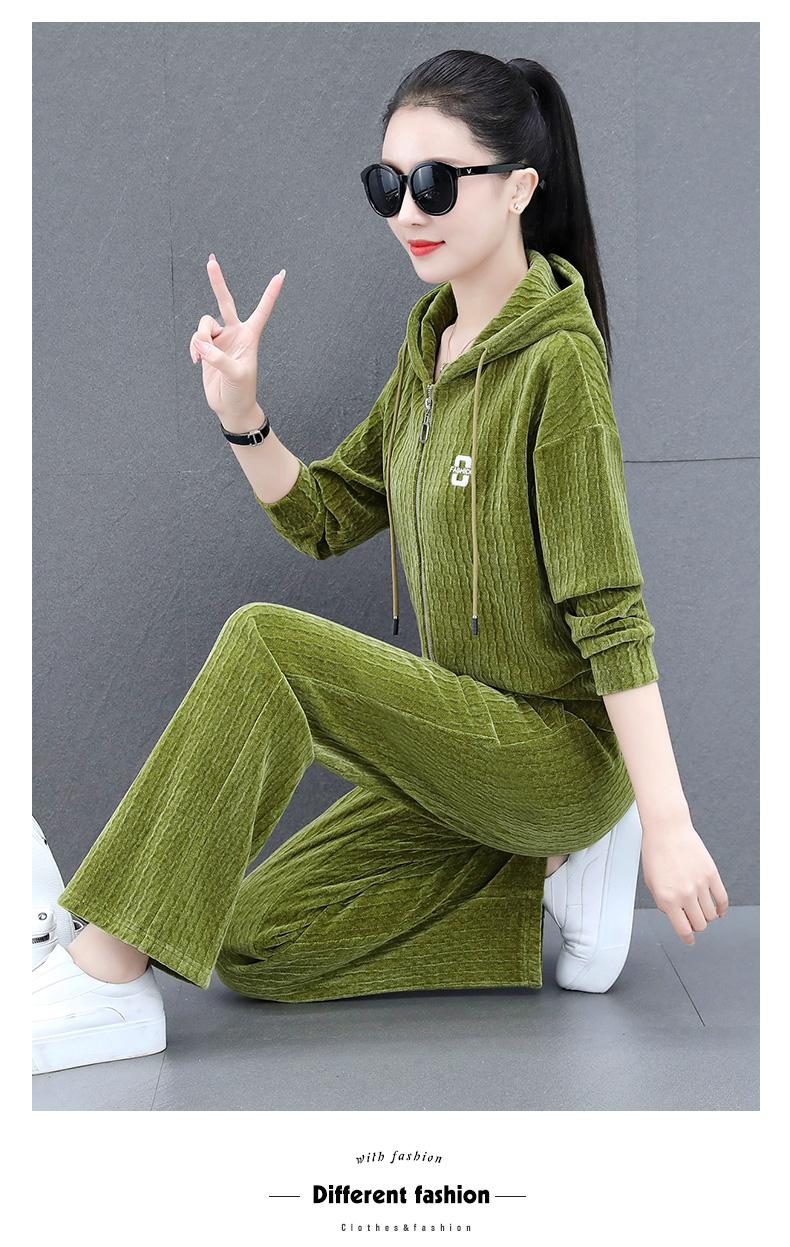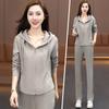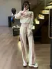 Traje deportivo de otoño para mujer, dos piezas, con capucha, pantalones anchos, estilo occidental, suéter de moda antiedad, ropa casual, novedad de 2025