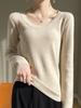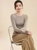 Camisa ligera de punto de cachemira de lujo para mujer, suéter de cachemira sin costuras de corte ajustado con cuello redondo de color sólido para otoño e invierno, venta al por mayor