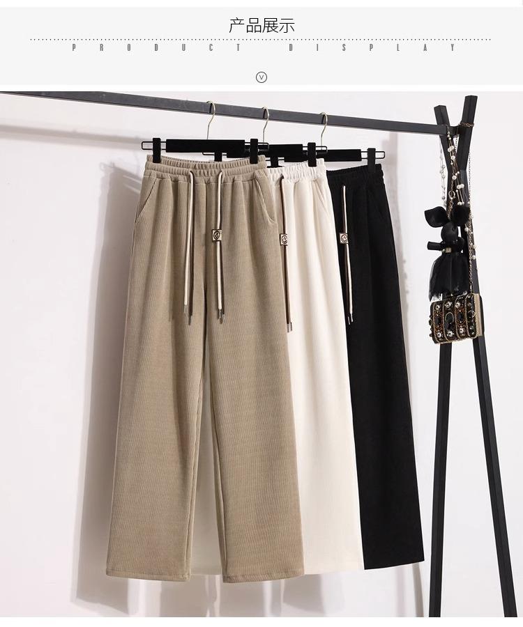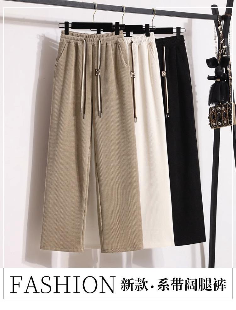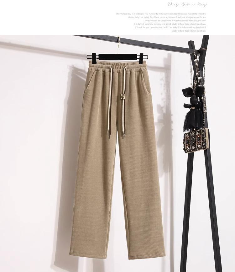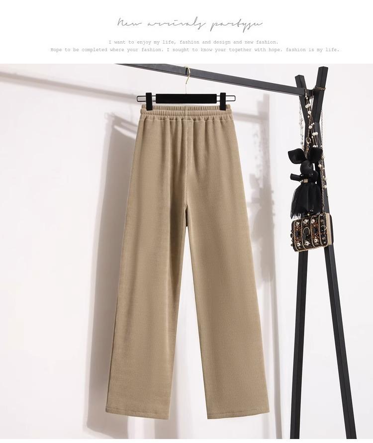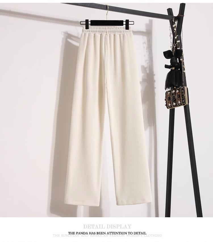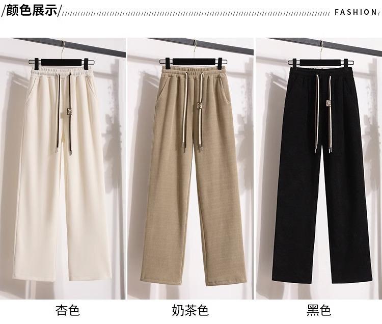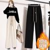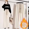 Pantalones casuales de otoño e invierno forrados de polar de pierna ancha estrecha para niñas Nuevos pantalones elásticos gruesos para mujer pantalones rectos sueltos con caída