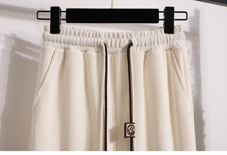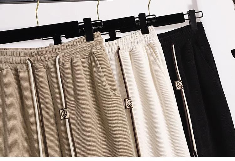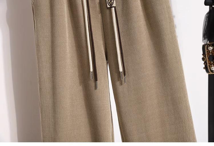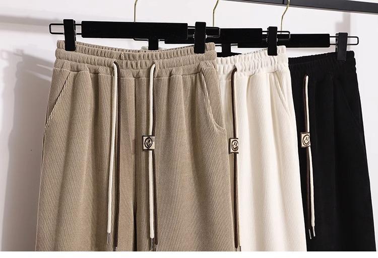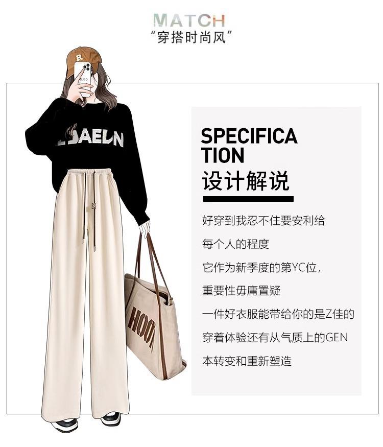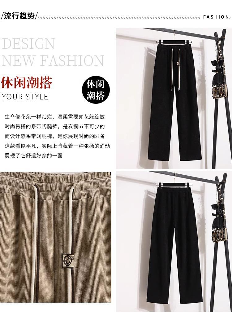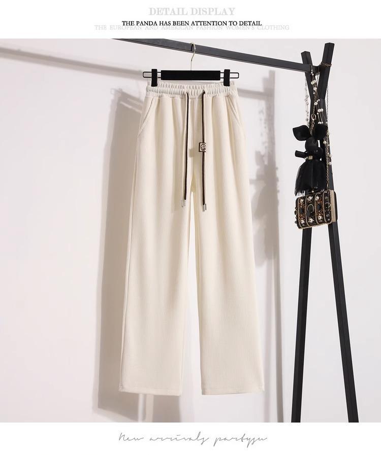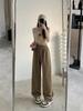 Pantalones casuales de otoño e invierno forrados de polar de pierna ancha estrecha para niñas Nuevos pantalones elásticos gruesos para mujer pantalones rectos sueltos con caída