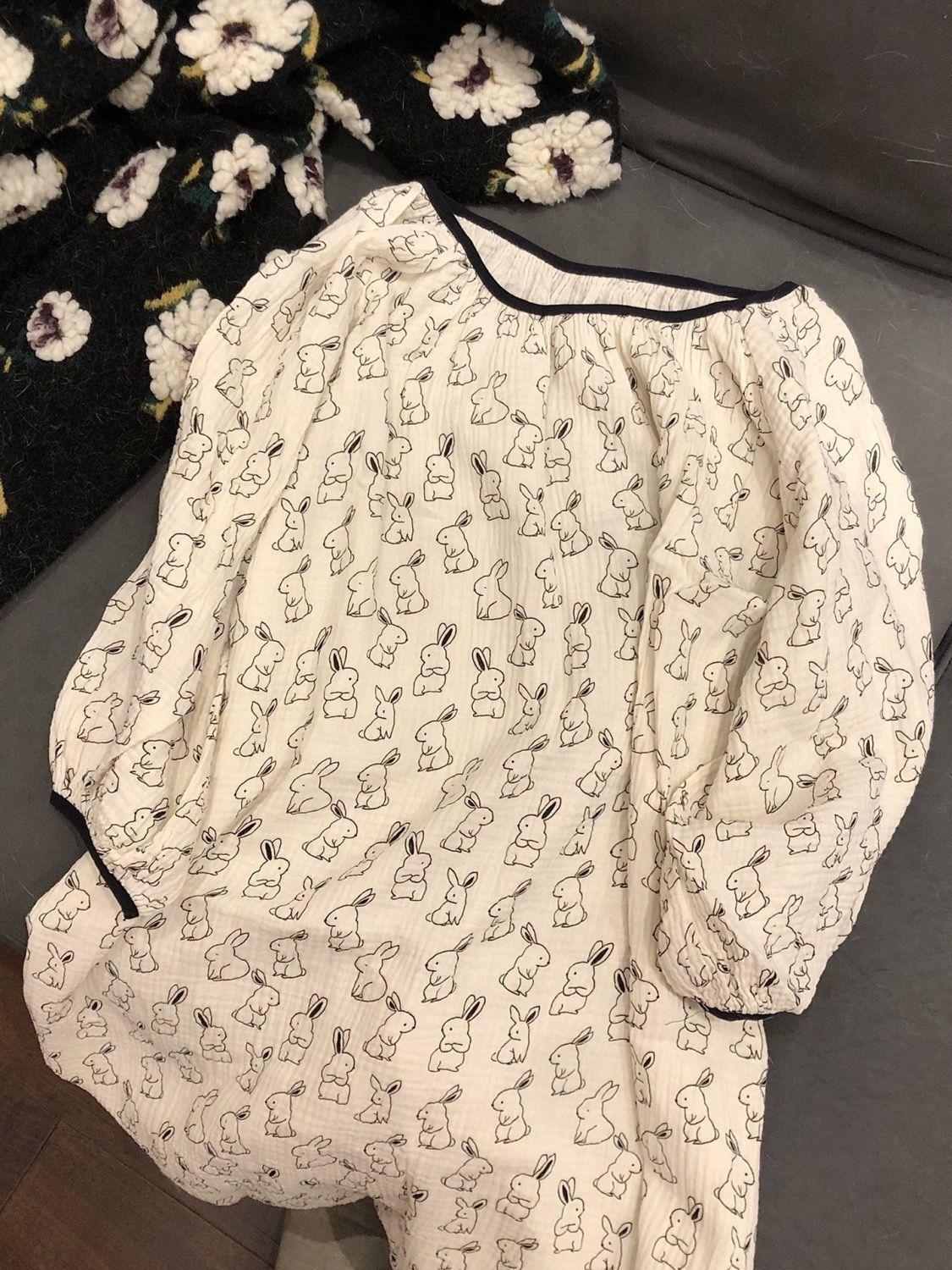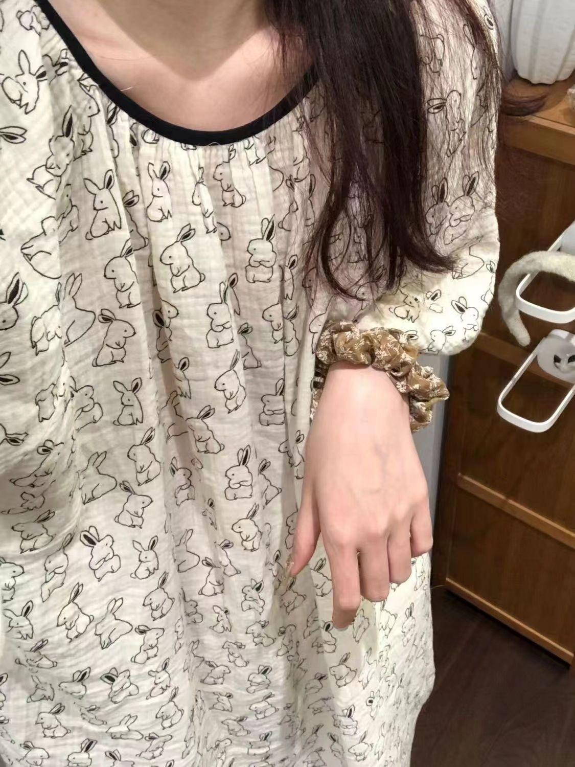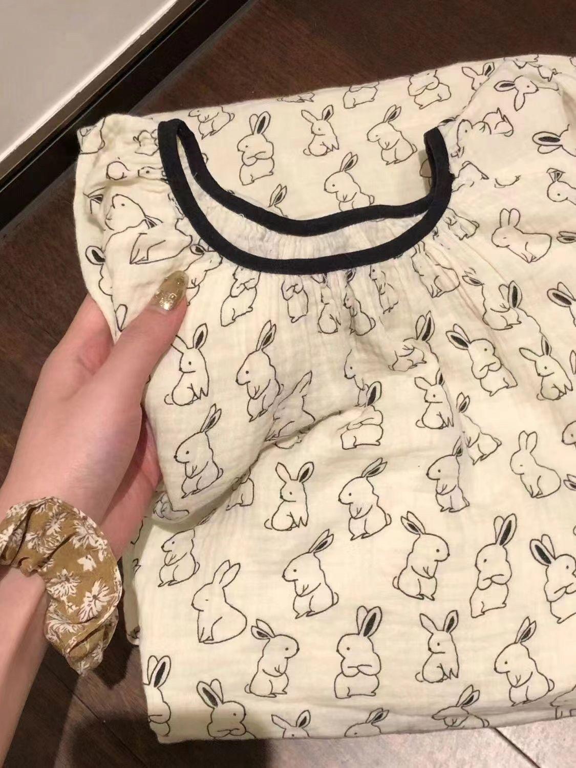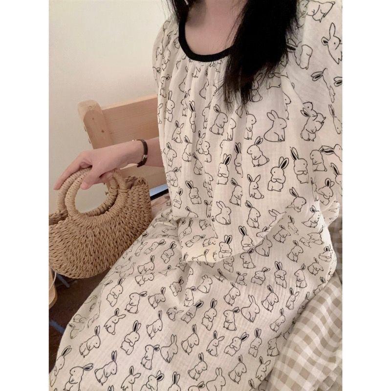 Pijamas para mujer primavera y verano nuevo de alta calidad dulce ropa para el hogar camisón niña lindo conejito estampado abrigo vestido