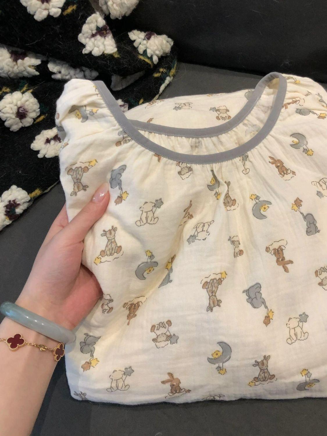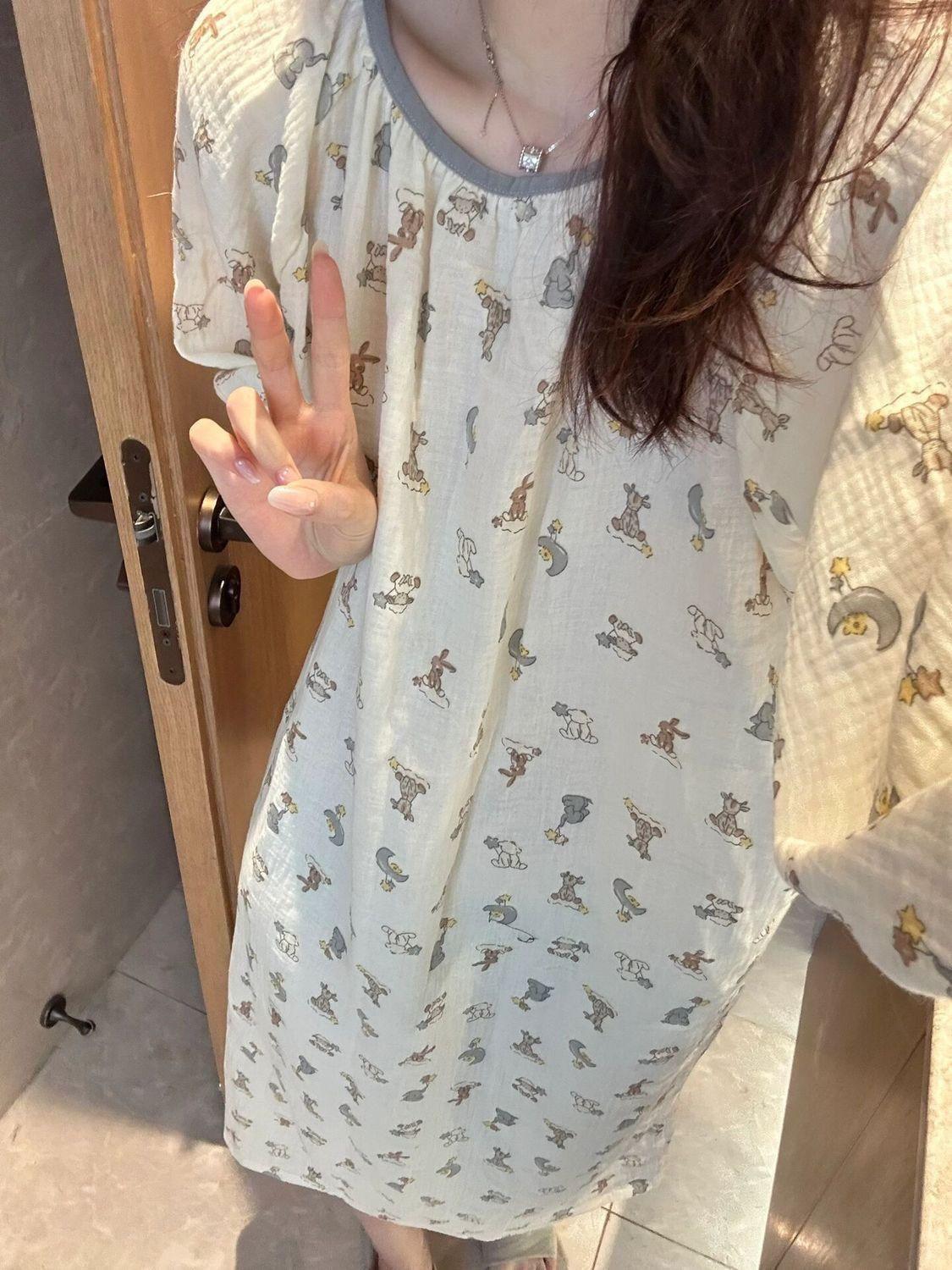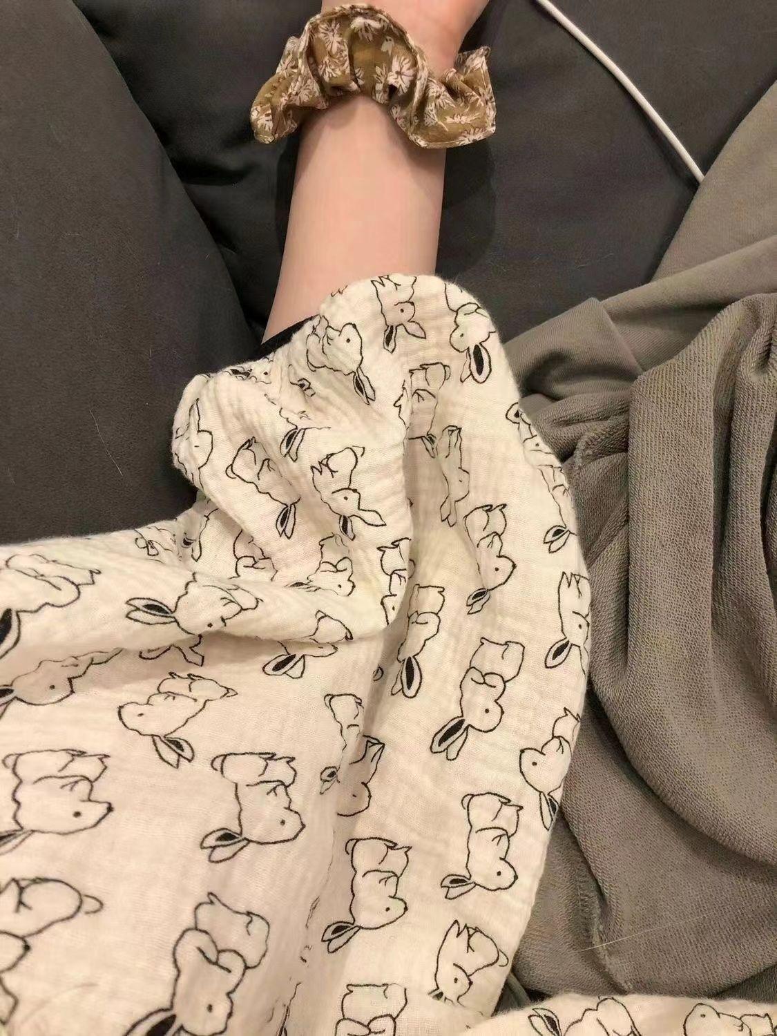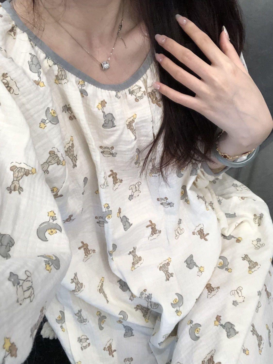 Pijamas para mujer primavera y verano nuevo de alta calidad dulce ropa para el hogar camisón niña lindo conejito estampado abrigo vestido
