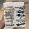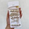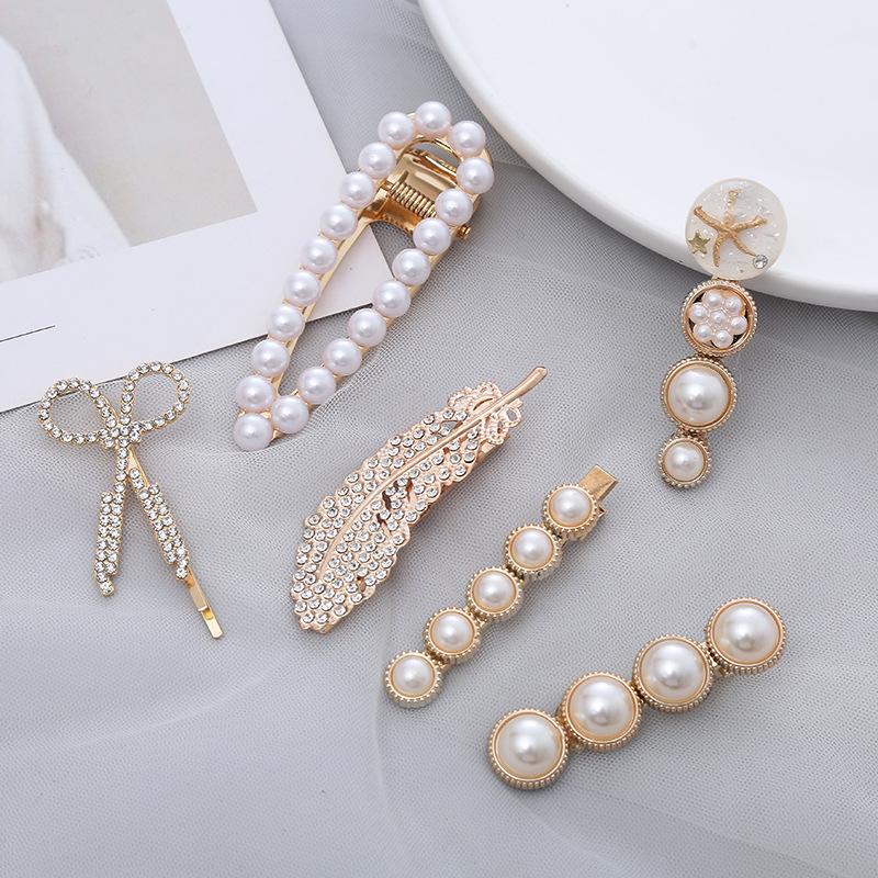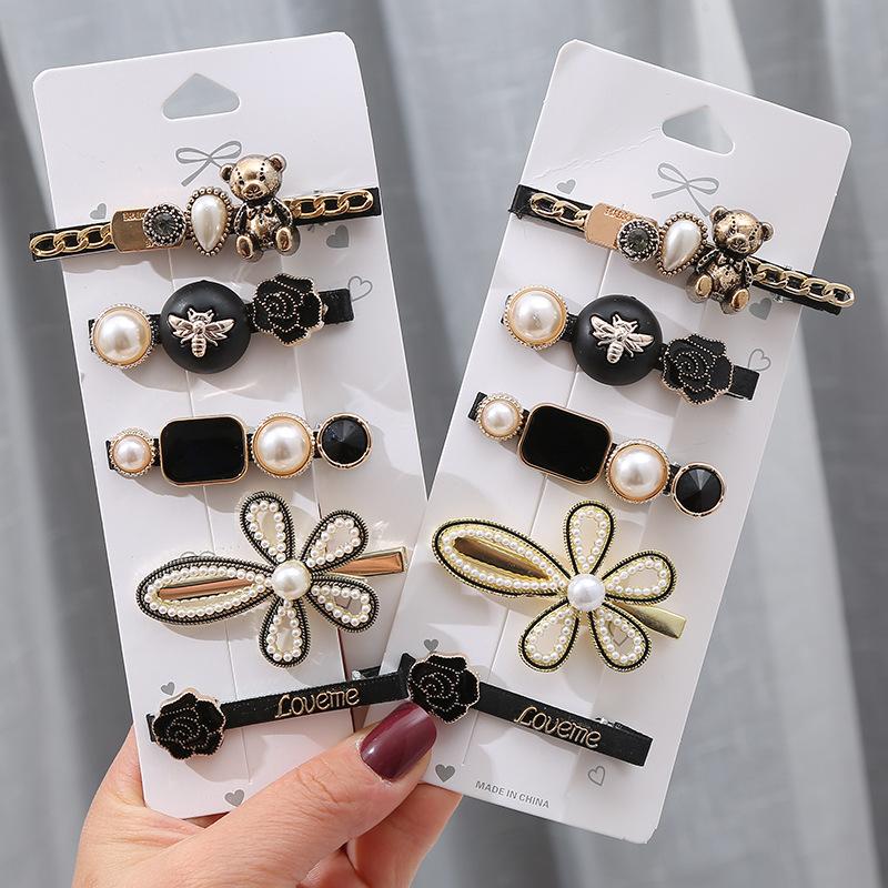 Conjunto de horquillas con clip lateral de oso vintage de Internet Celebrant, moderno y sencillo clip de pico de pato con plumas de perla de imitación, accesorios para el cabello con sentido avanzado