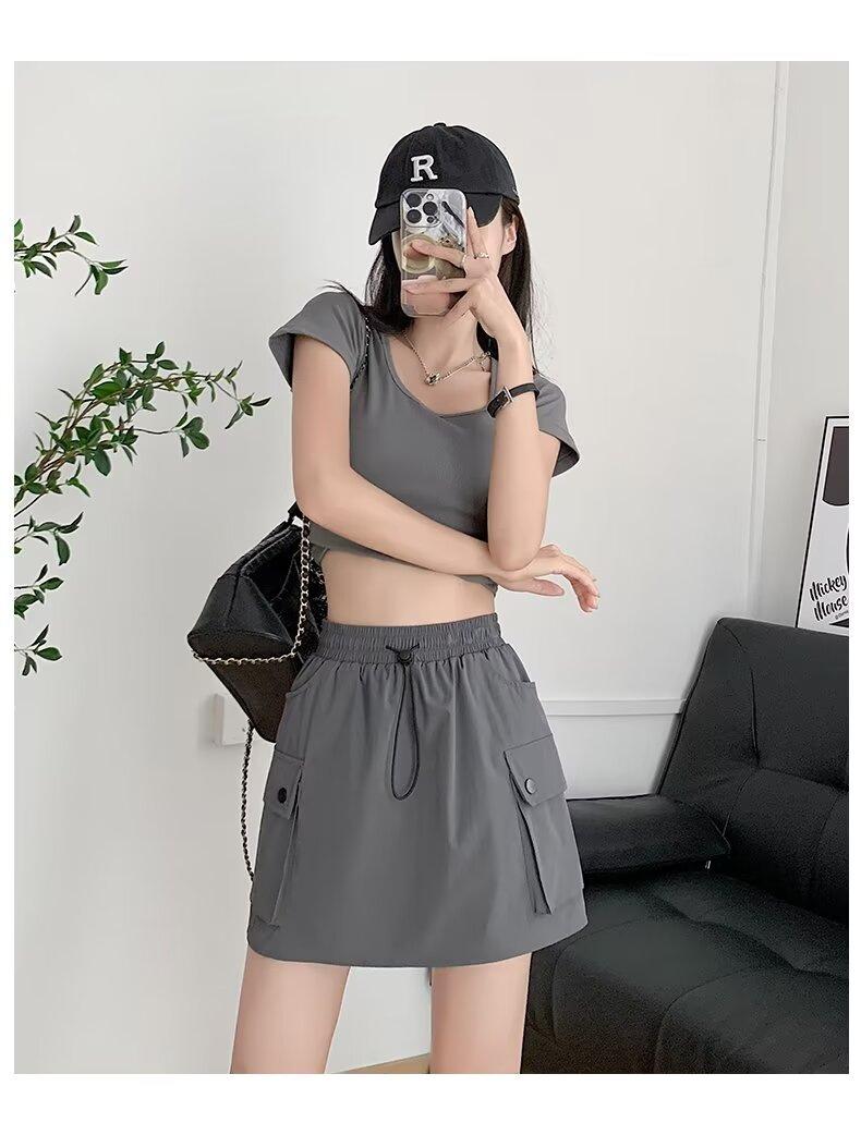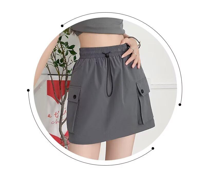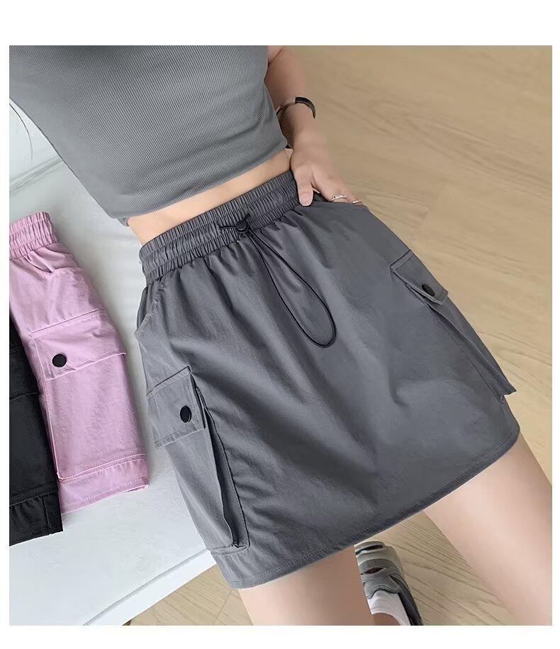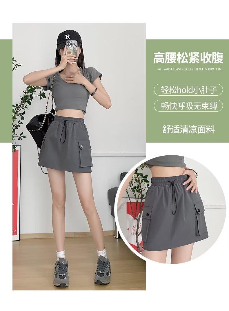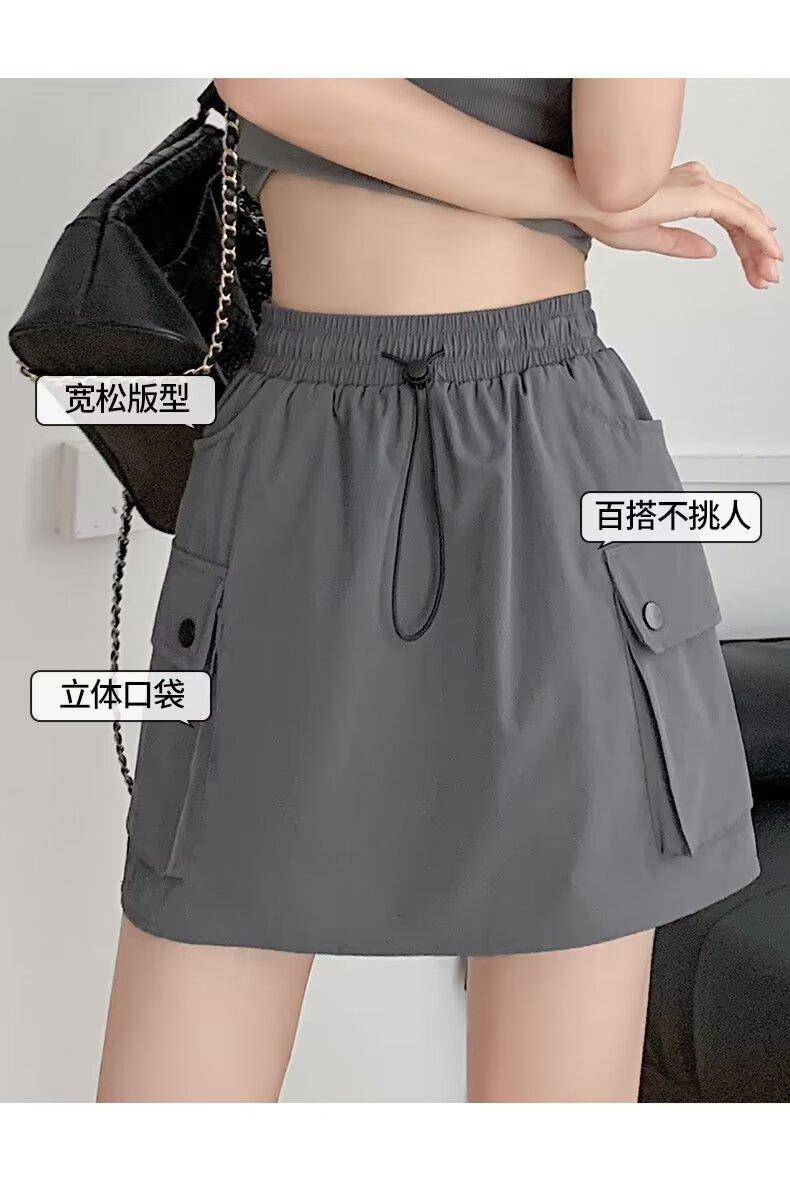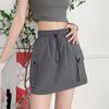 Falda de Herramientas de Secado Rápido para Mujer Verano 2024 Nuevo Cintura Alta Línea A Pequeña Ajustada Estilo Americano Gris Pantalones Cortos Culottes