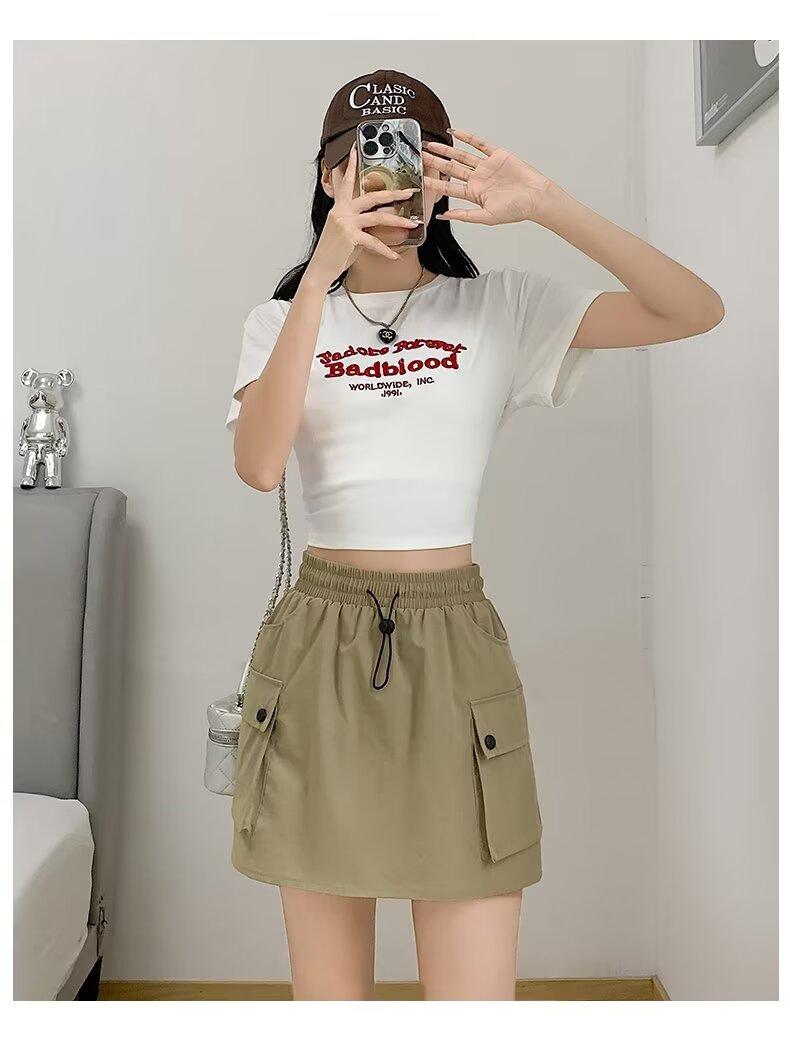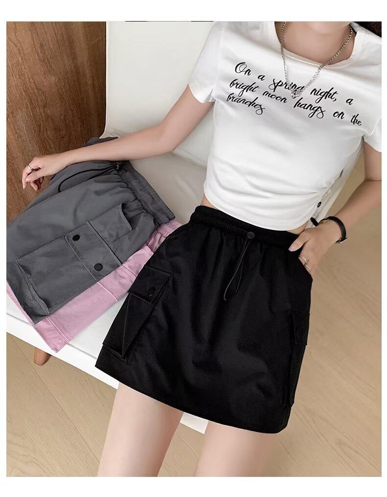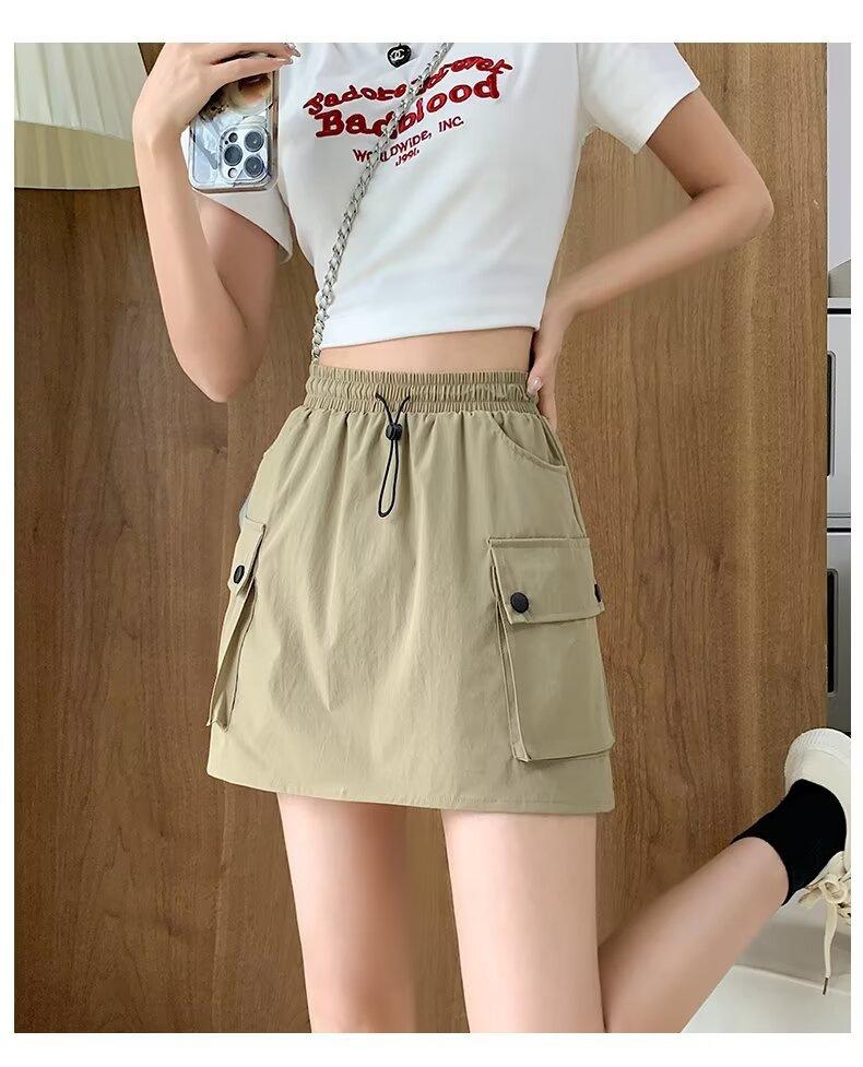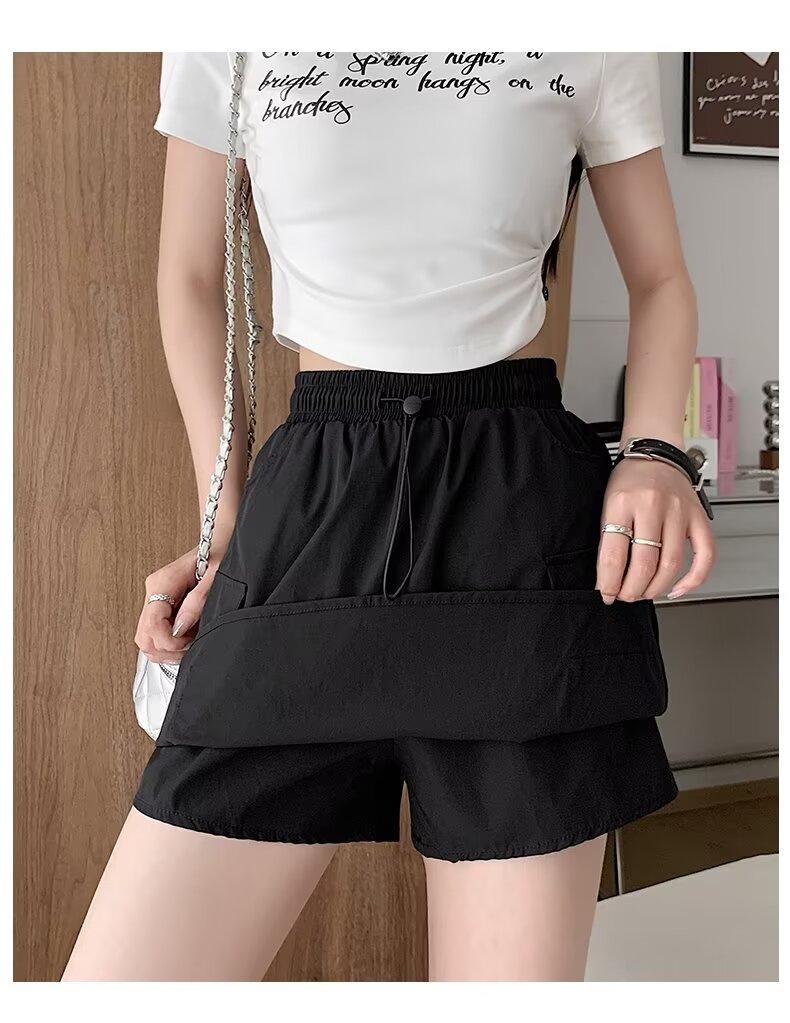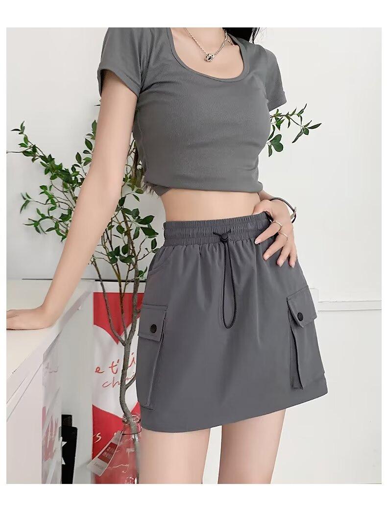 Falda de Herramientas de Secado Rápido para Mujer Verano 2024 Nuevo Cintura Alta Línea A Pequeña Ajustada Estilo Americano Gris Pantalones Cortos Culottes
