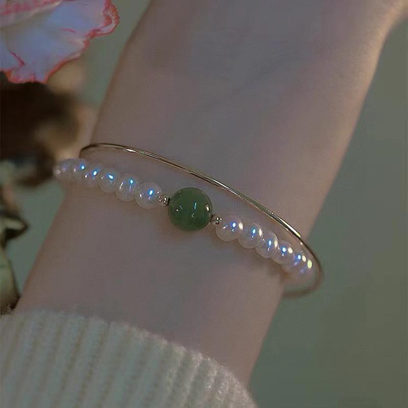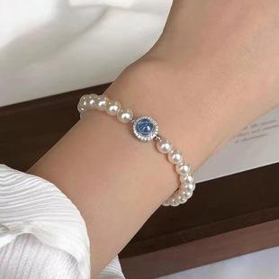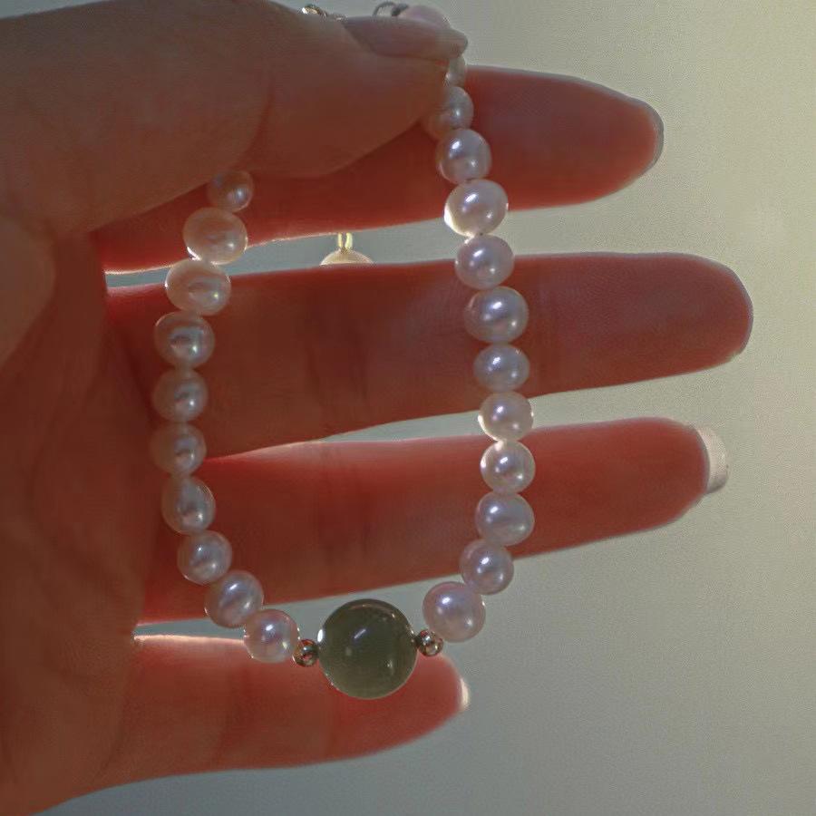 | Pulsera de perlas Shijia de aguamarina de plata esterlina Mercury S925 con nicho, luz francesa, lujosa, nicho, joyería de mano pequeña y fresca |