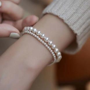 | Pulsera de perlas Shijia redondas, ligeras y fuertes para mujer, de alta calidad, fabricada en Estados Unidos, chapada en oro de 14 k, sencilla y versátil, con el mismo estilo de joyería. |