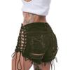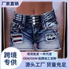 Primavera y Verano Amazon Transfronterizo Europeo y Americano Rotos Laterales Ojal Vendaje Elástico Pantalones Cortos Calientes de Mezclilla para Mujer