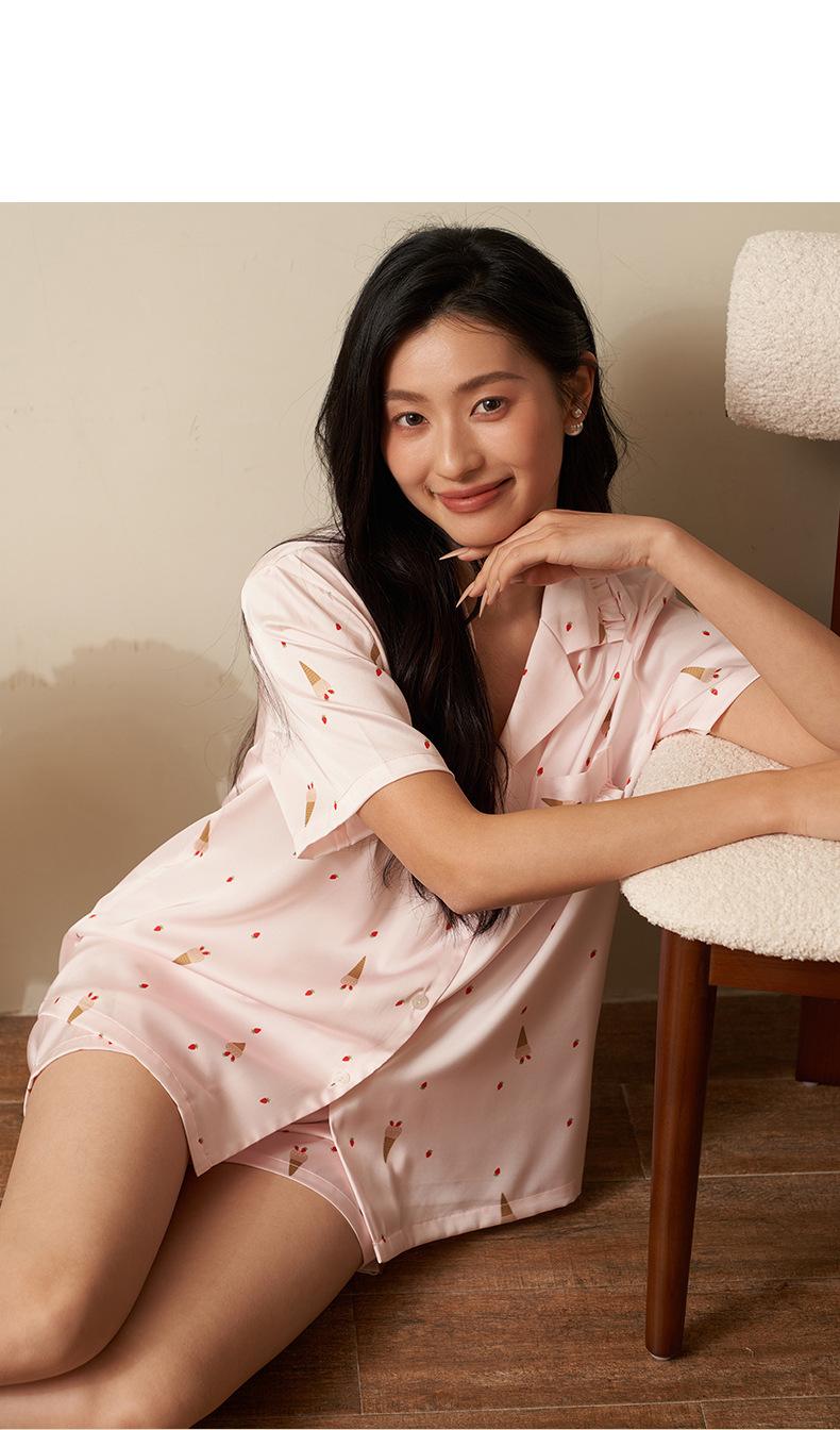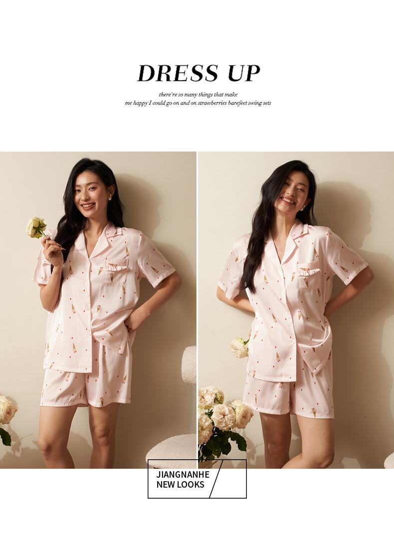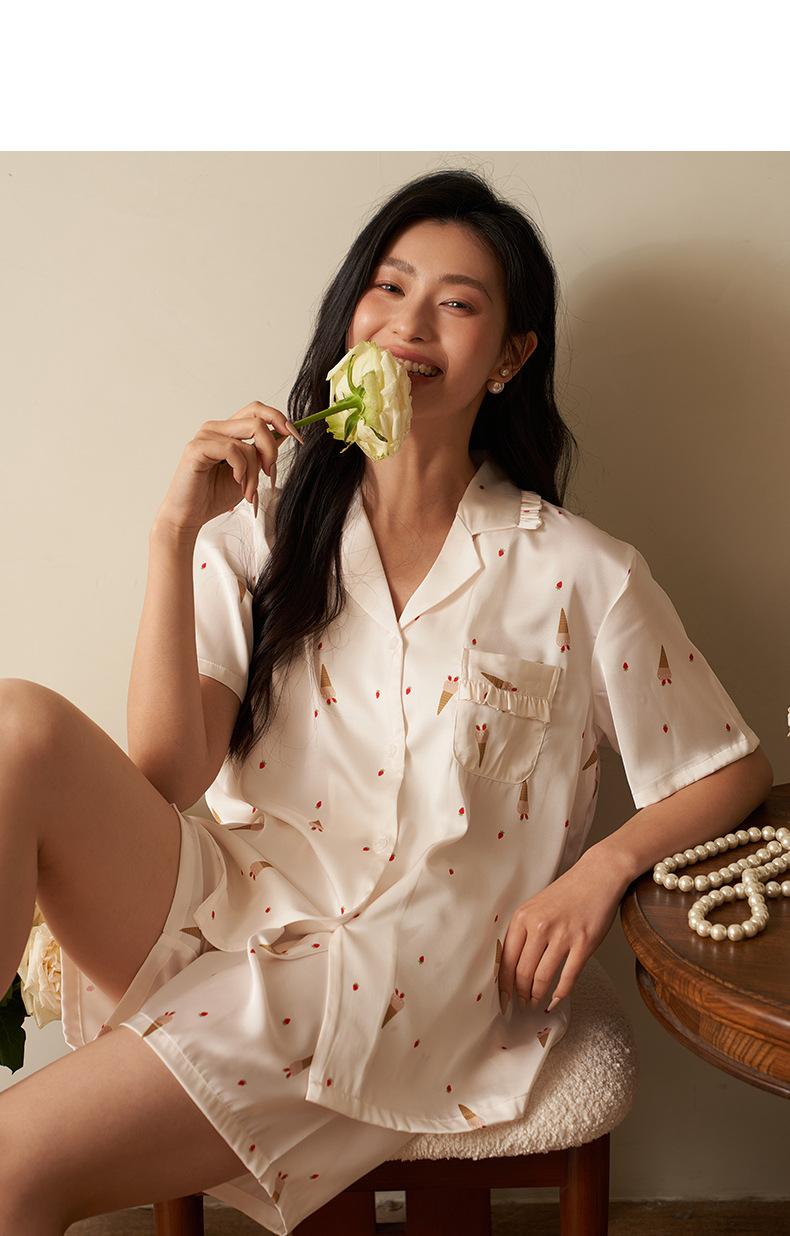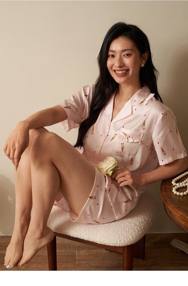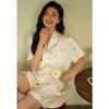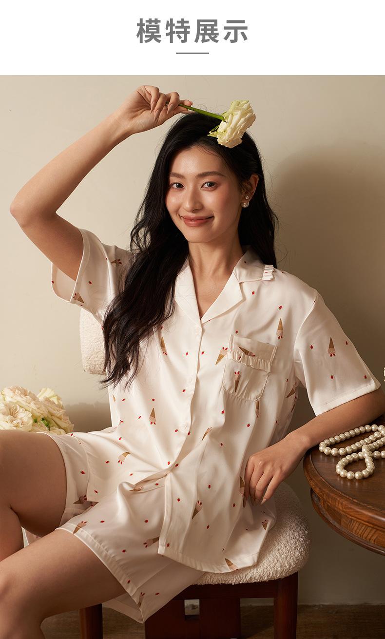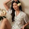 Jiangnan Wo 2024 - Pijama de seda helada para mujer, pantalones cortos de manga corta con cuello de hoja de loto, conjunto de ropa para el hogar con helado, novedad de verano