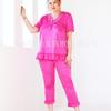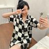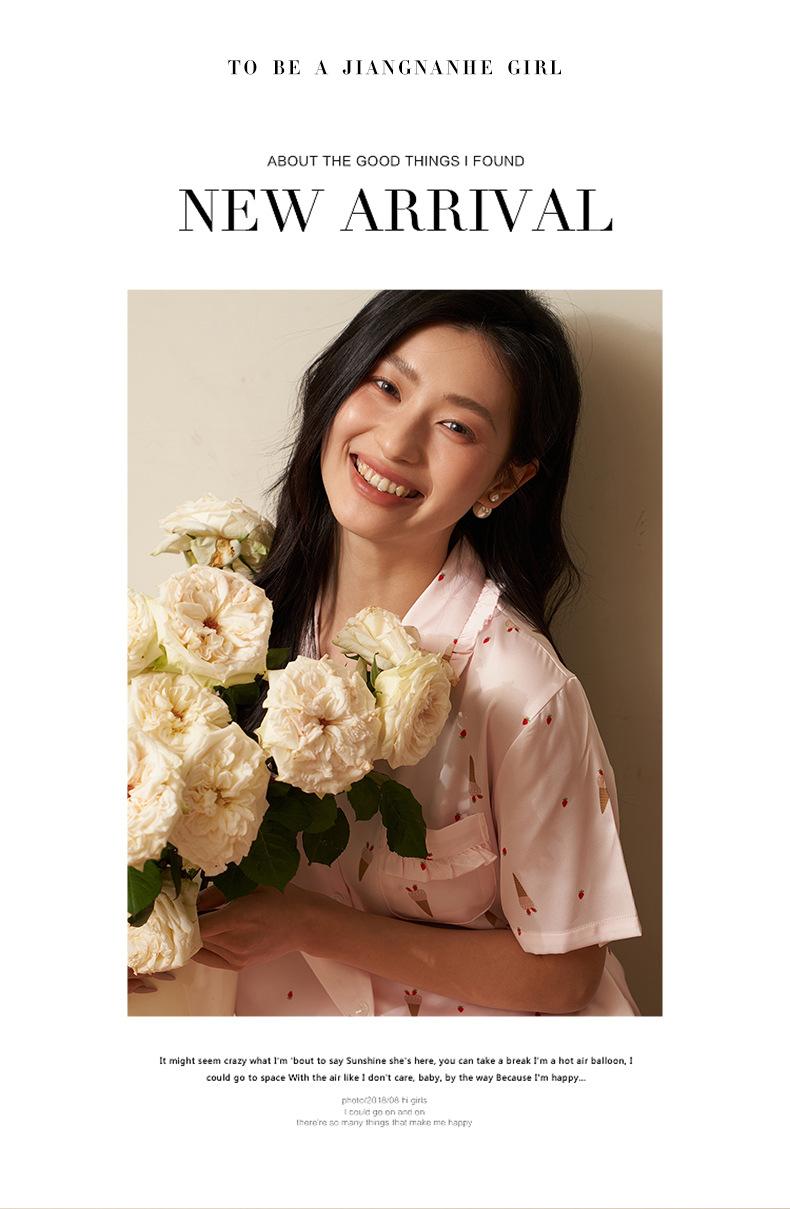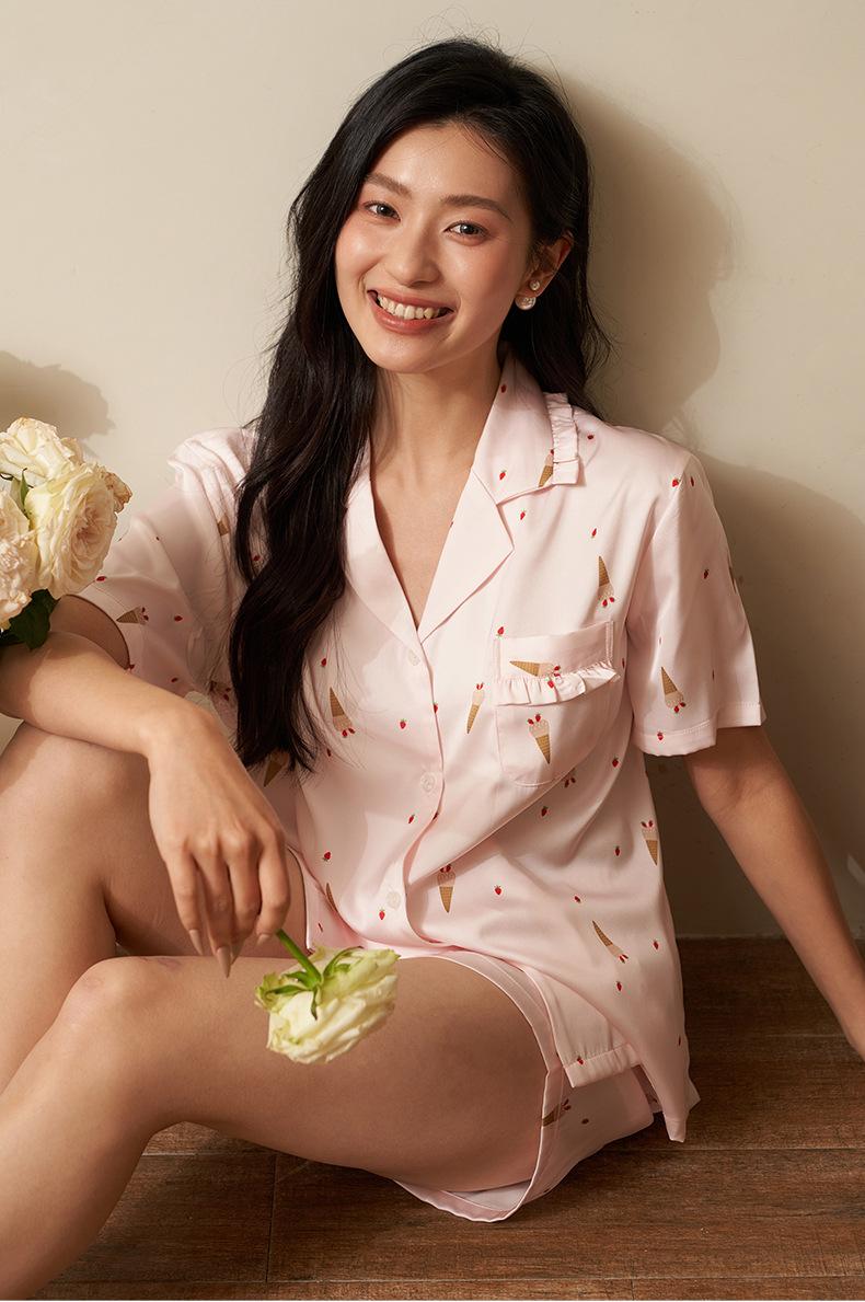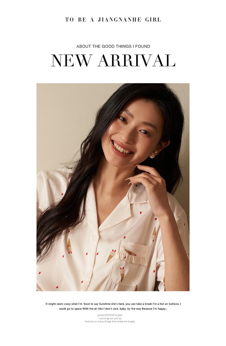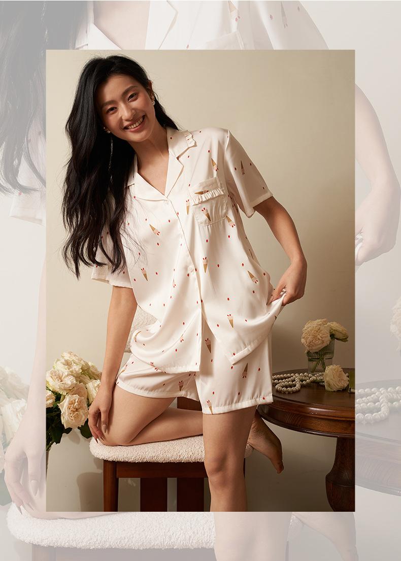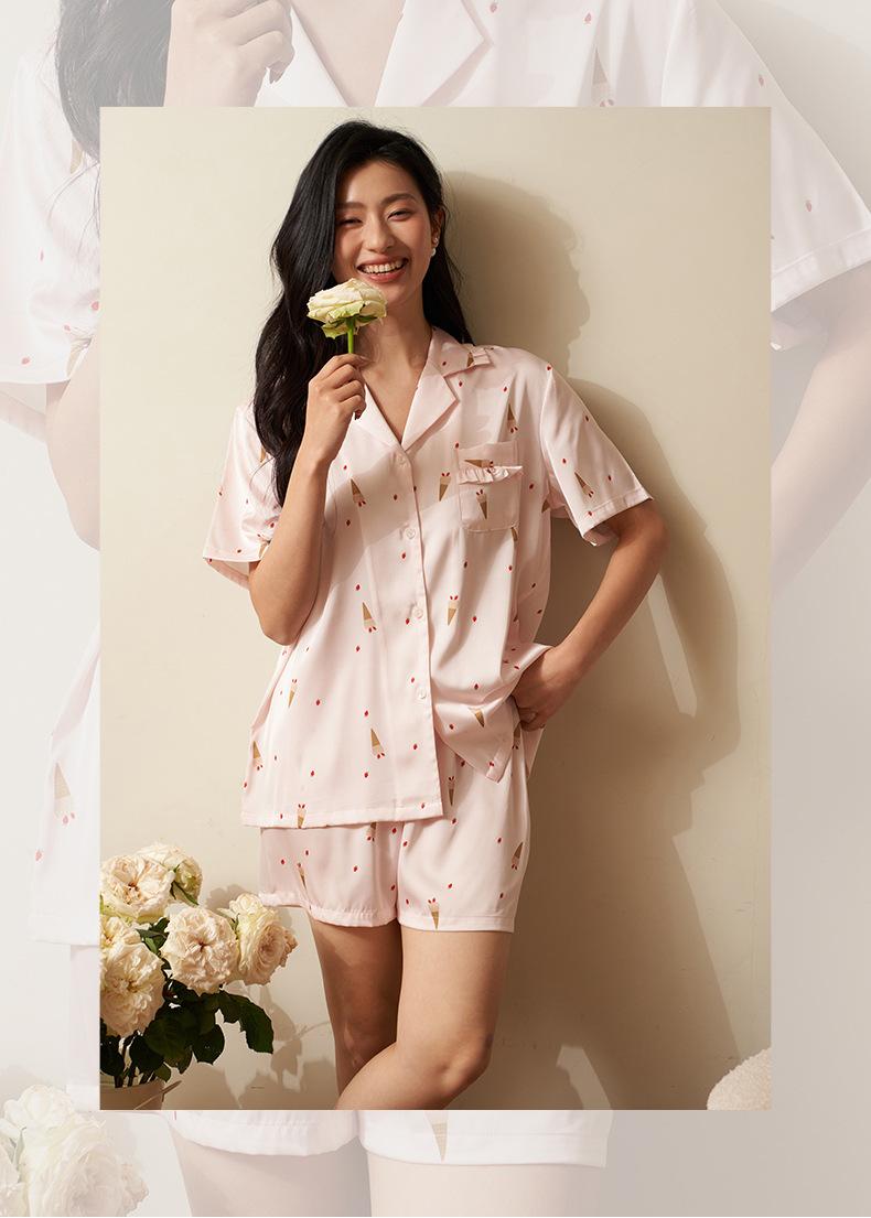 Jiangnan Wo 2024 - Pijama de seda helada para mujer, pantalones cortos de manga corta con cuello de hoja de loto, conjunto de ropa para el hogar con helado, novedad de verano