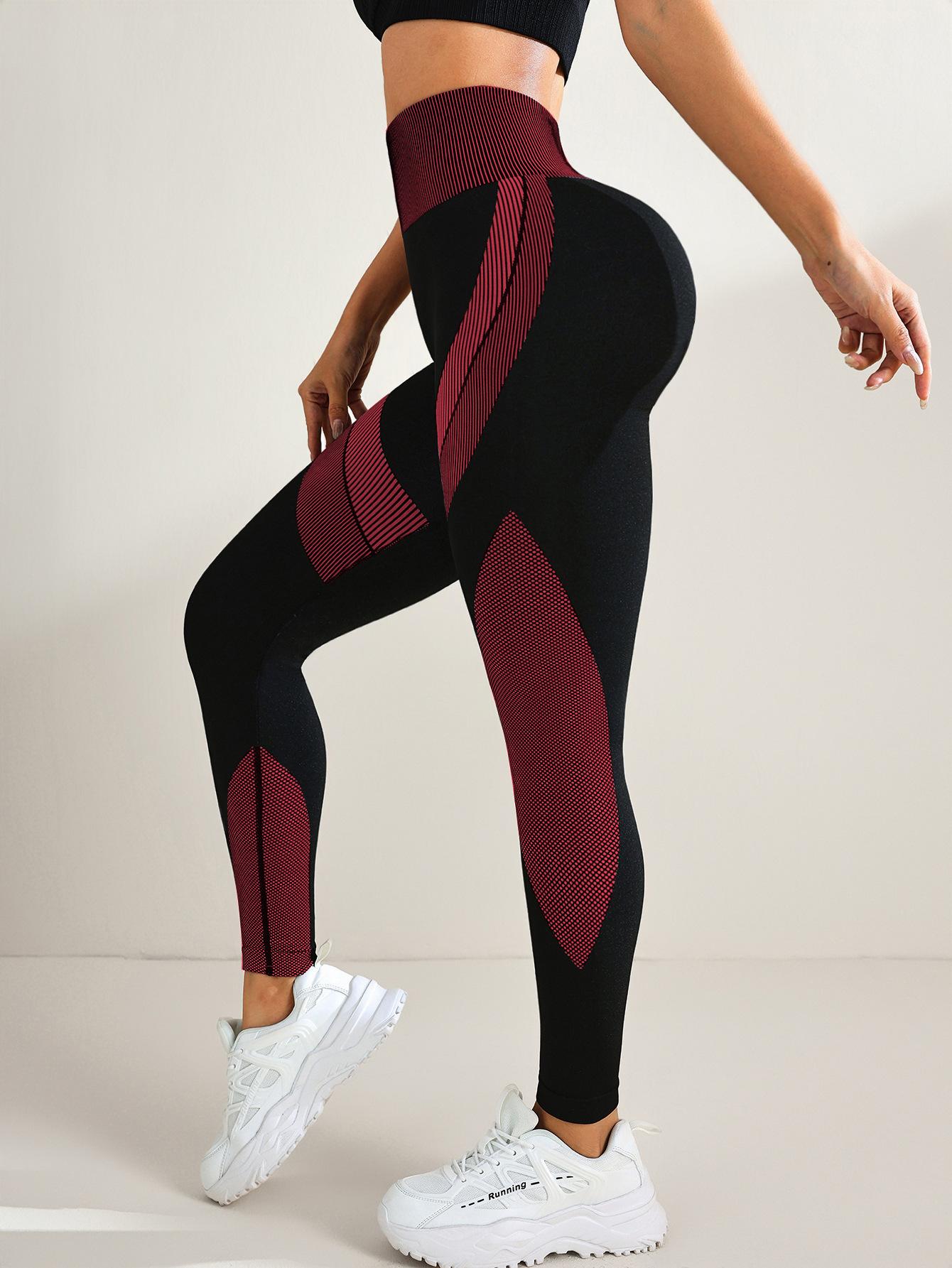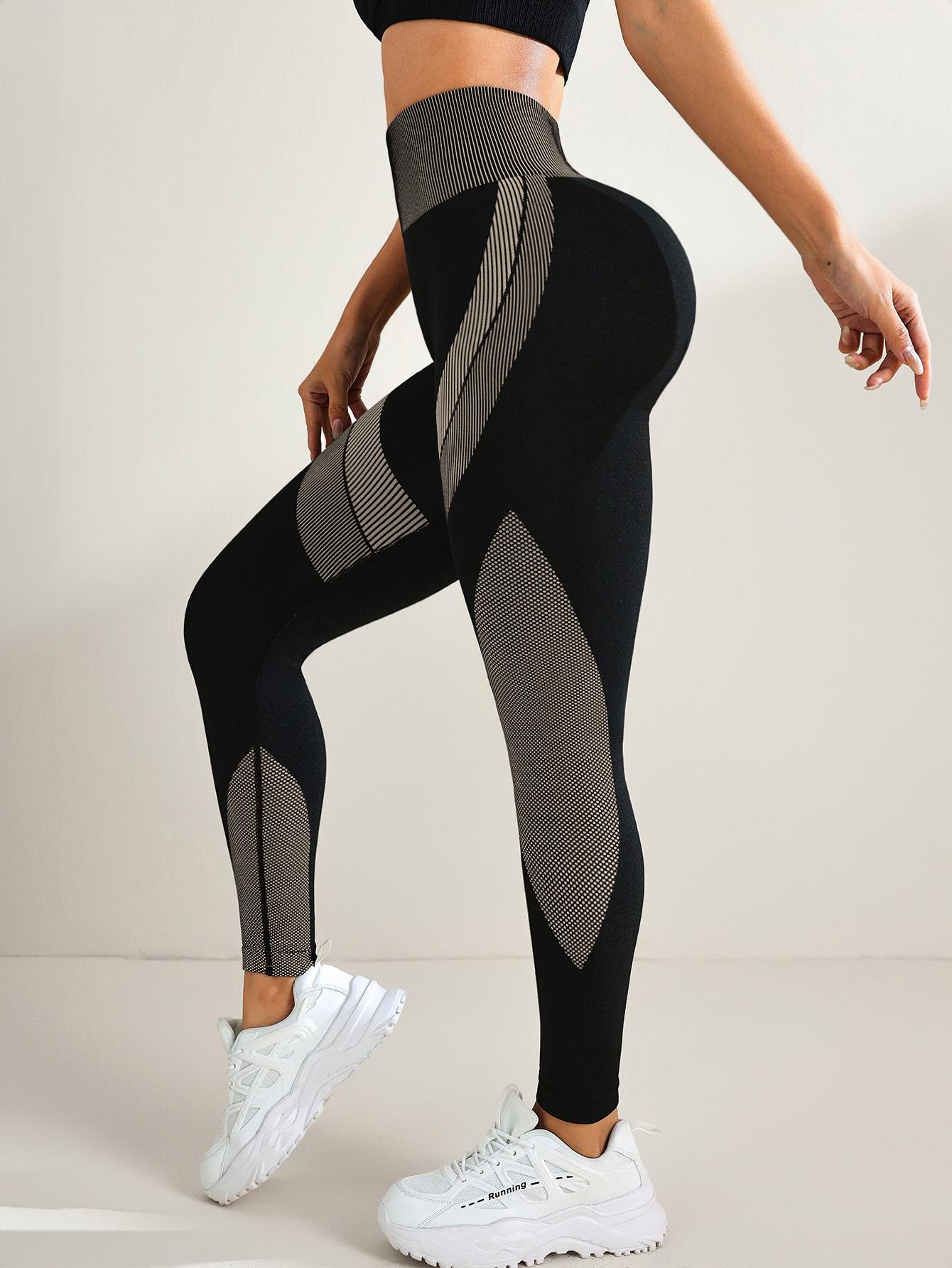 Pantalones de yoga deportivos de cintura alta, ajustados, transpirables y sin costuras, con contraste, para mujer, color negro, a rayas largas