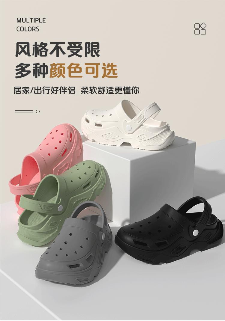 2024 Nuevos Zapatos Croc para Mujer Verano Ropa Exterior Suela Gruesa Aumento Sensación de Mierda Sandalias para Pareja Playa Sandalias y Pantuflas Baotou