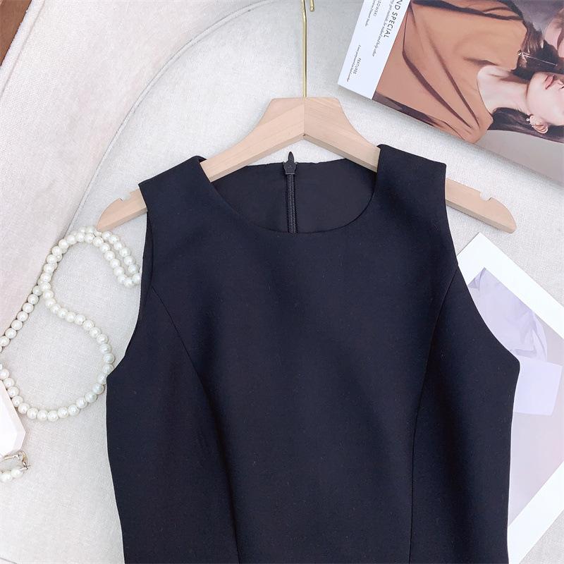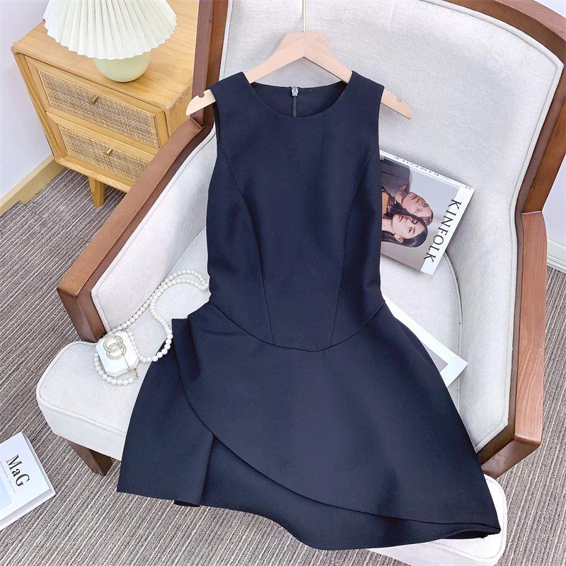 En stock Avenem Vestido sin mangas de corte irregular Diseño de mujer Sentido del temperamento Cintura ajustada Adelgazante Falda corta de línea A Primavera