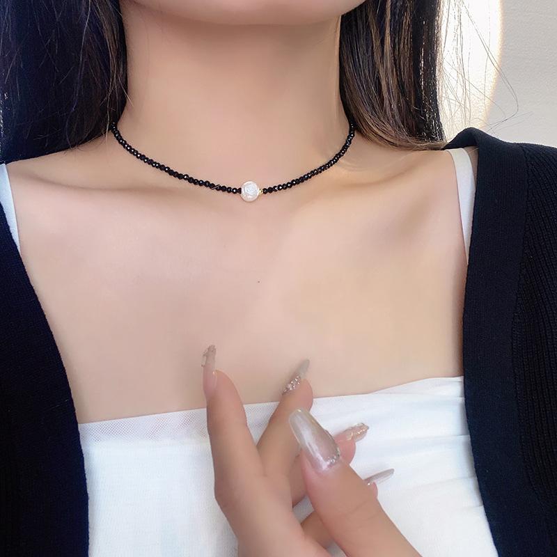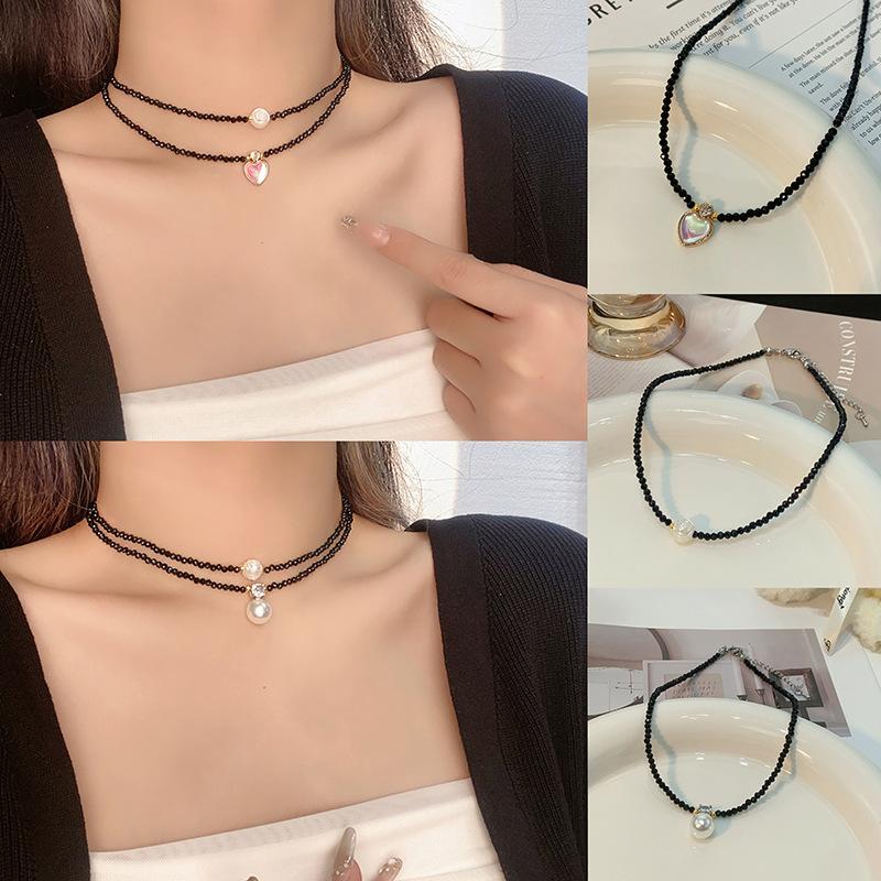 Collar de perlas de circón con diseño de nicho de lujo ligero para mujer, cadena de clavícula con cuentas de alta gama que combina con todo, elegante y de moda para el verano.