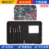 | Bolsa de almacenamiento de cosméticos de lona de algodón, ecológica, con veta de madera auténtica, color block, con cremallera, bolsa de viaje con forma de concha. |