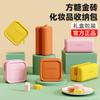 | Bolsa de almacenamiento para artículos de tocador con cremallera de color sólido simple, bolsa de almacenamiento portátil impermeable cuadrada, bolsa de cosméticos de viaje de cuero PU de doble cara |