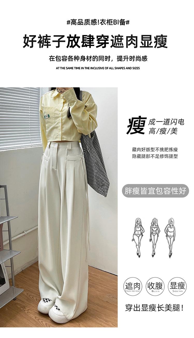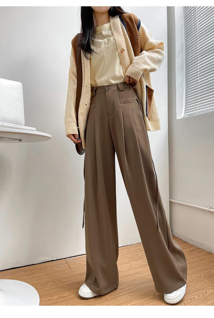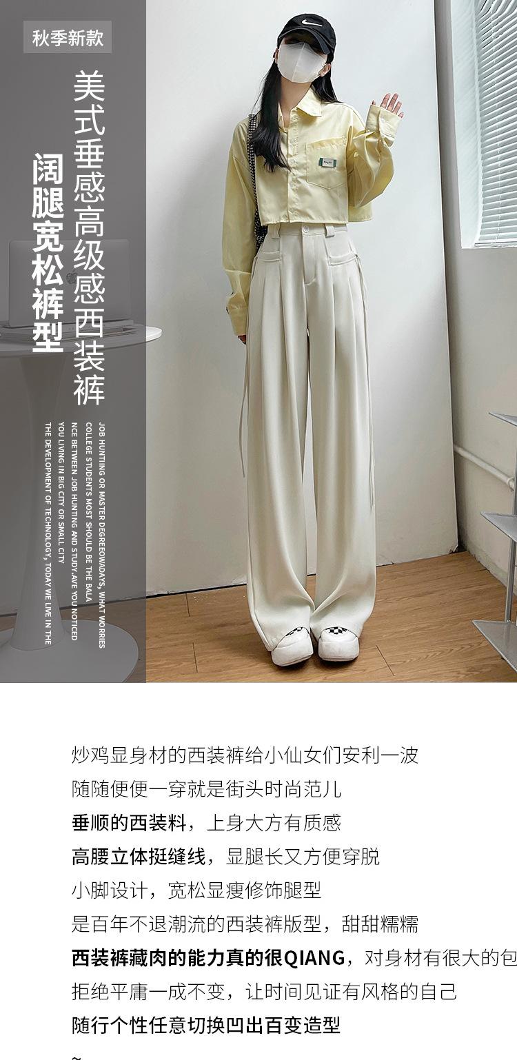 Pantalones de Traje Americanos para Mujer Primavera Mujer 2025 Nuevo Estilo Pantalones Casuales Rectos con Caída Cintura Alta Efecto Adelgazante Largo hasta el Suelo Pierna Ancha