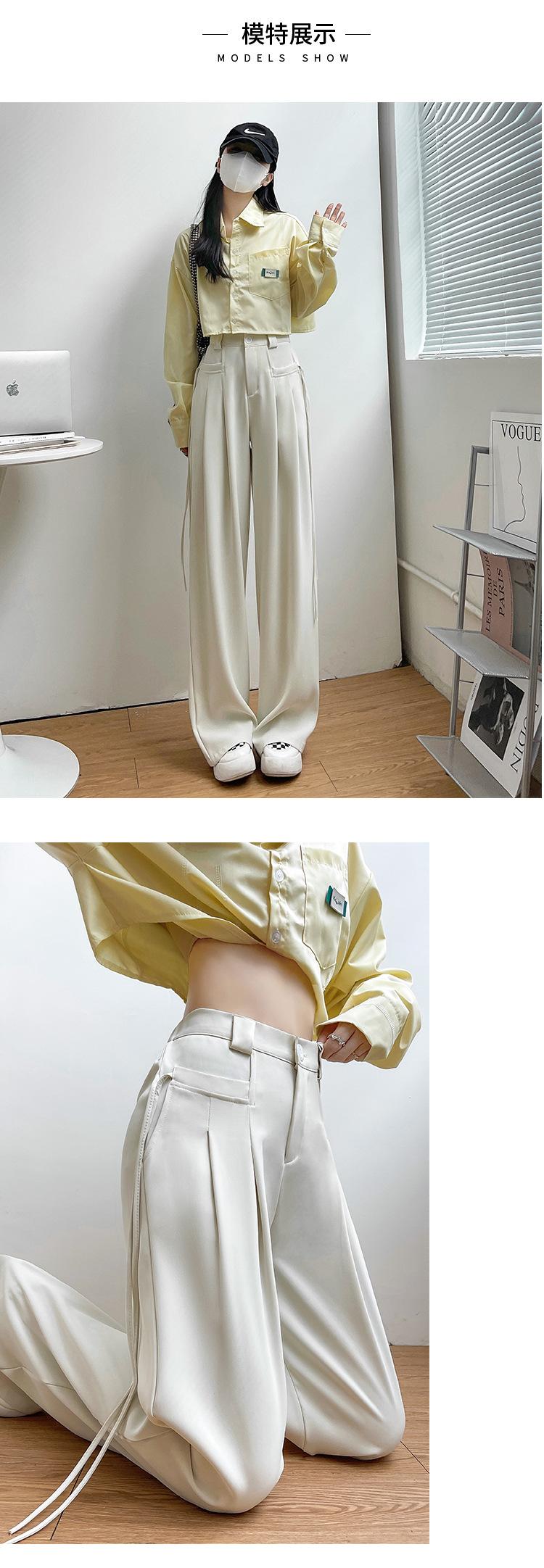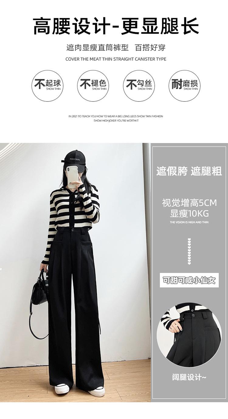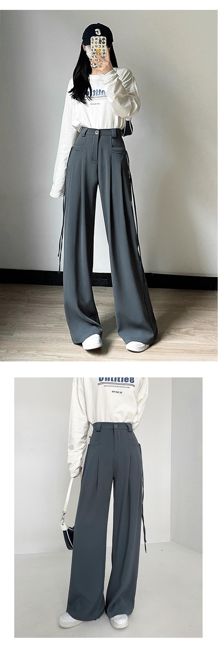 Pantalones de Traje Americanos para Mujer Primavera Mujer 2025 Nuevo Estilo Pantalones Casuales Rectos con Caída Cintura Alta Efecto Adelgazante Largo hasta el Suelo Pierna Ancha