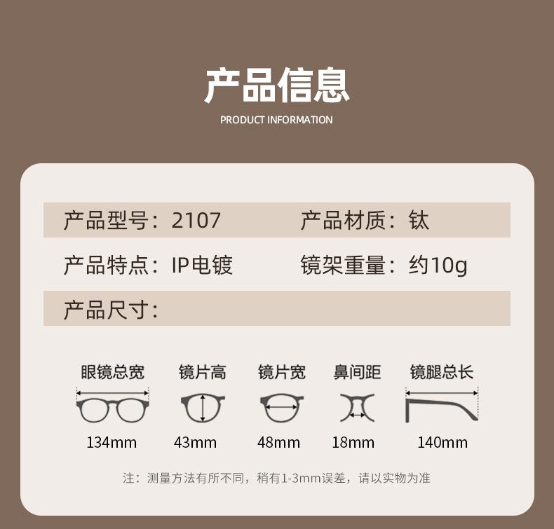 2023 Nuevo Estilo Armazón de Gafas Armazón de Gafas Vintage Titanio Puro Cara Pequeña Gafas de Montura Completa Gafas para Mujer 2107 Armazón de Gafas Cyber Celebrant Gafas a Juego