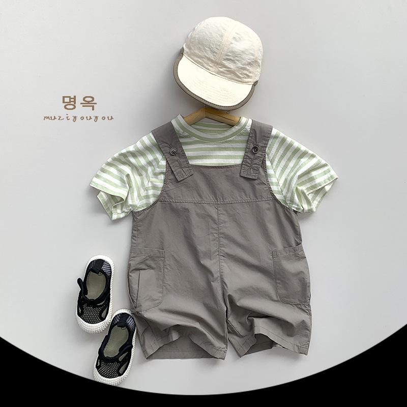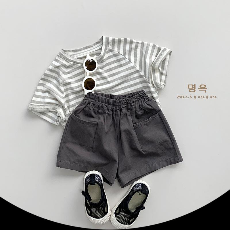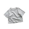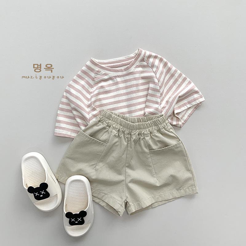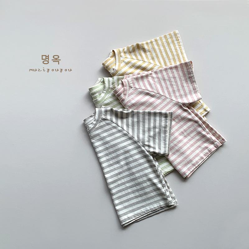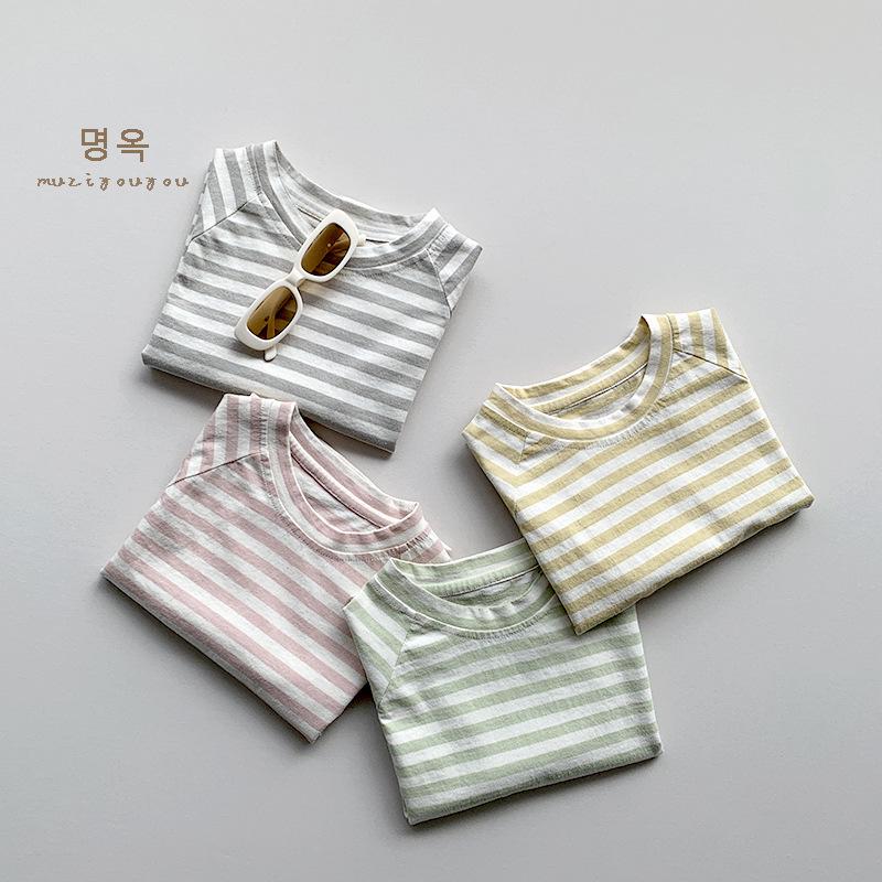 Camiseta de rayas de manga corta para niños color macarrón, nueva camiseta de verano para niños y niñas de algodón y lino, estilo coreano, top informal combinable.