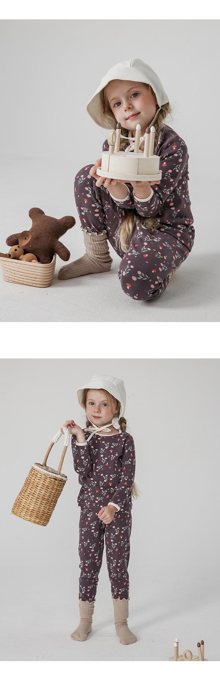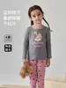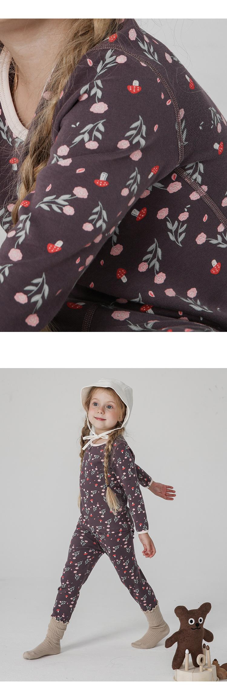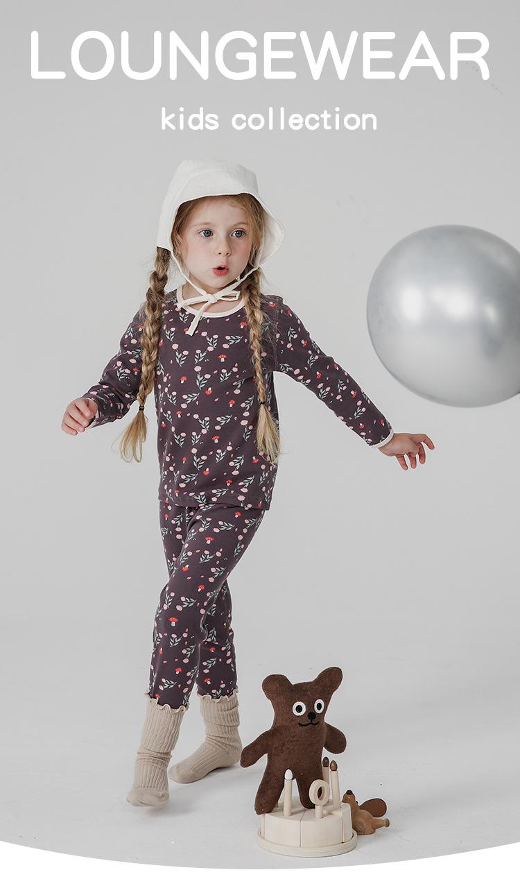 Conjunto de pijama infantil de otoño e invierno, ropa de otoño gruesa con diseño de florecitas lindas, pantalones largos, ropa para el hogar infantil, caja de regalo