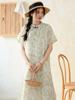 Vestido chino con estampado floral de ramio para mujer, falda cheongsam modificada de estilo chino, ropa de té retro de manga corta, venta al por mayor