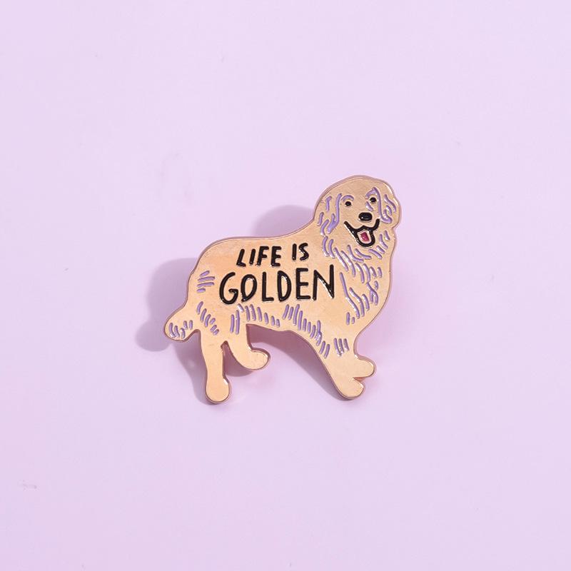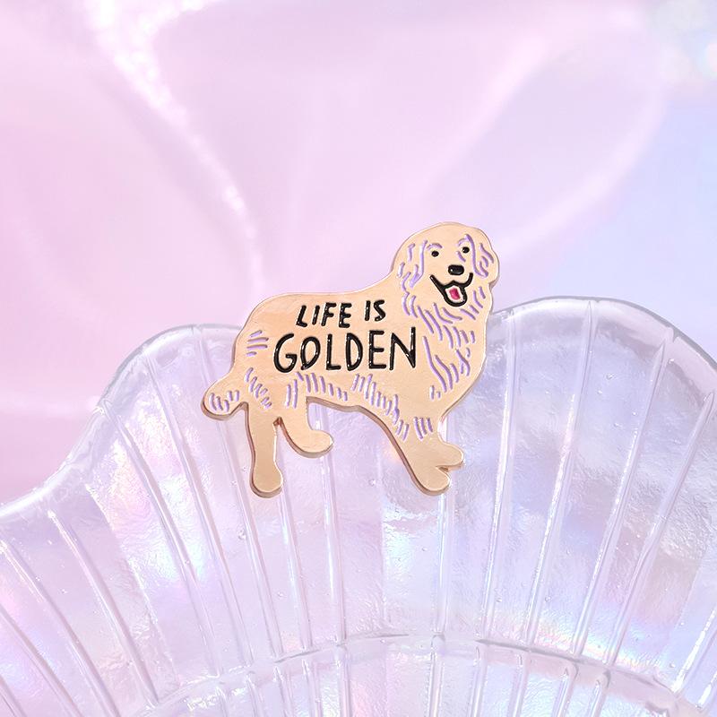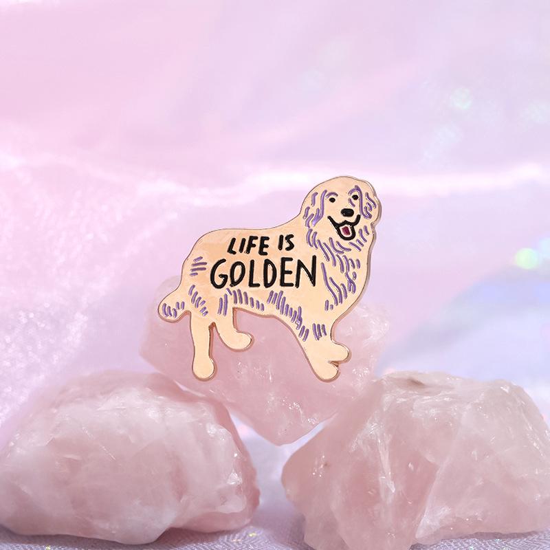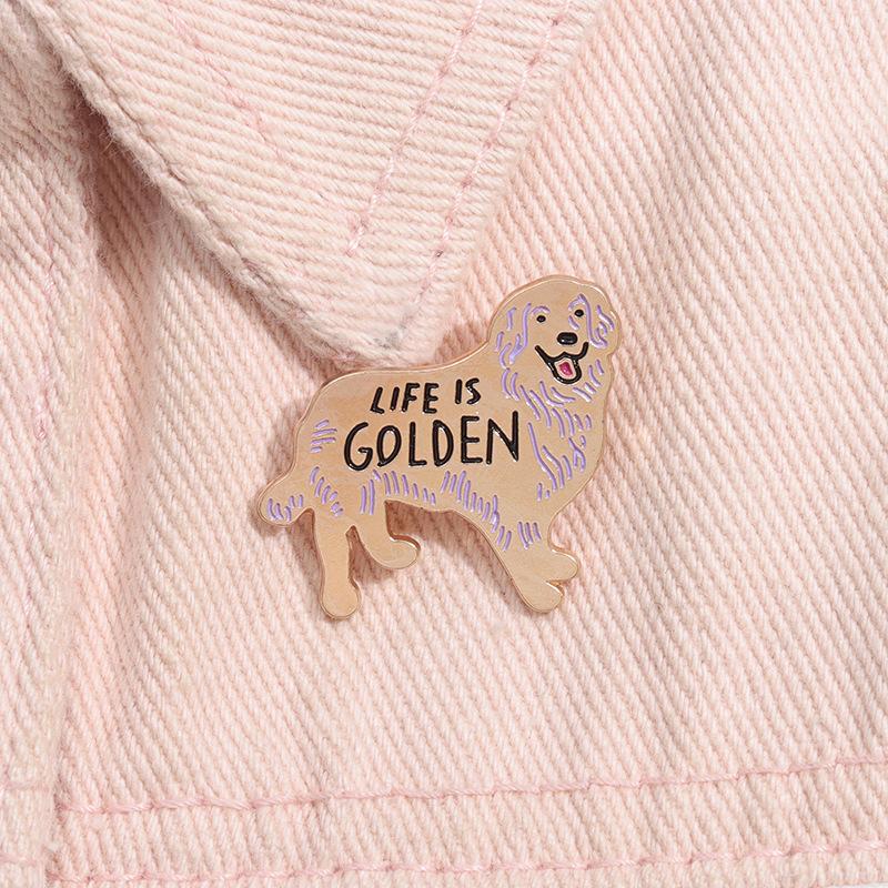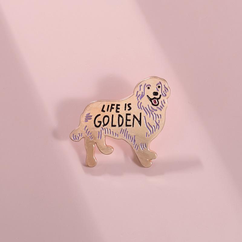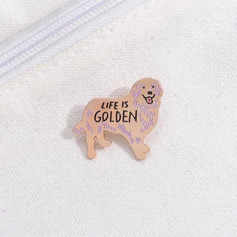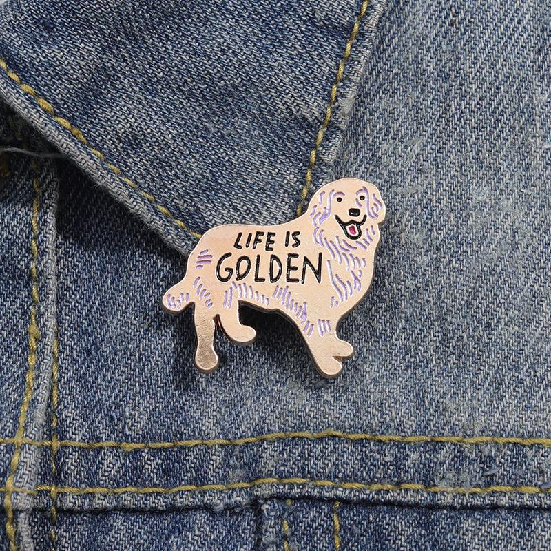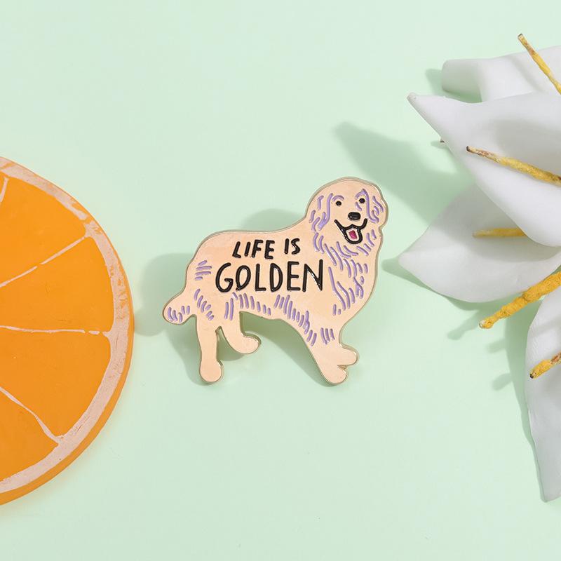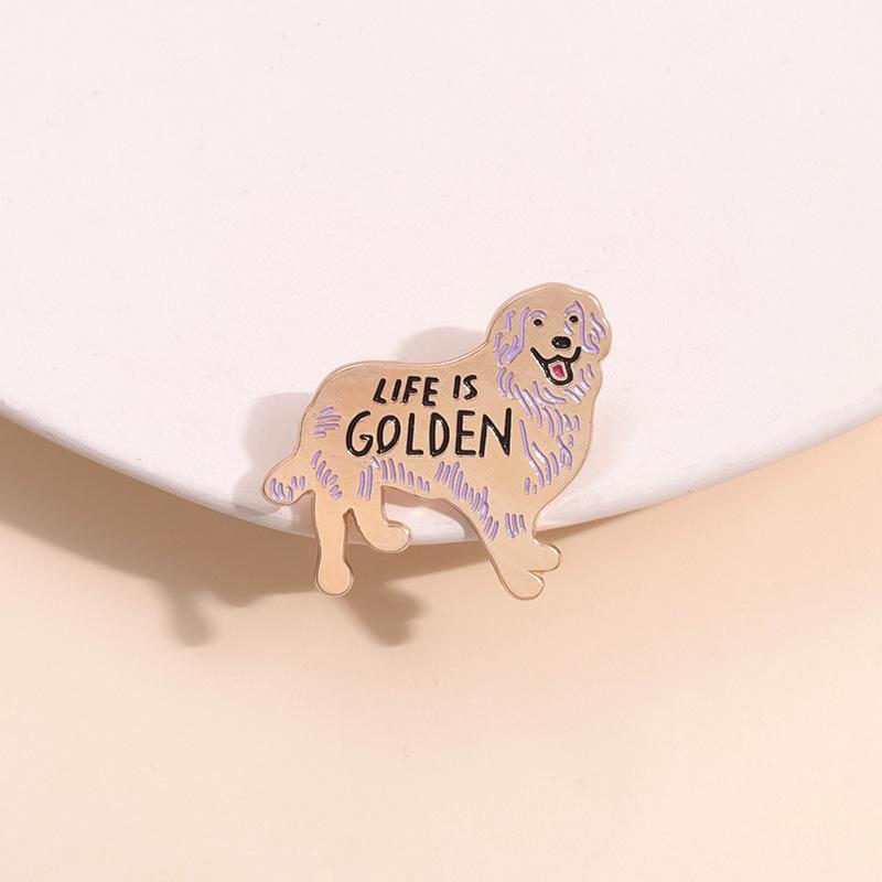Broche de dibujos animados de perro, insignia de metal de golden retriever grande, accesorio de ropa, alfiler para cuello, regalo exquisito que combina con todo