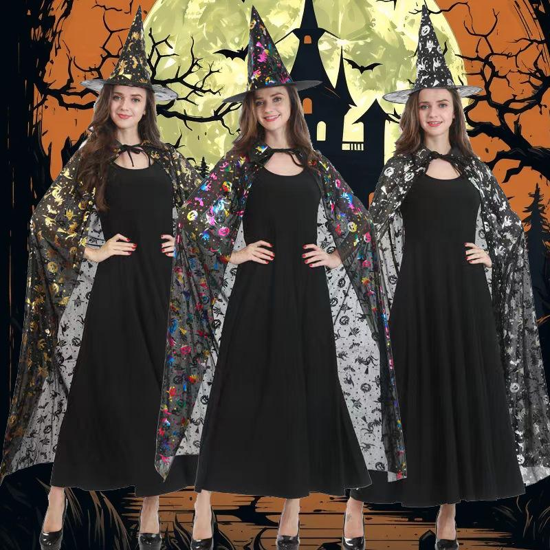 Capa de Halloween del Festival de Fantasmas de Jiaqi Capa de Mago de Bruja para Adultos y Niños Capa Dorada de Colores Mascarada
