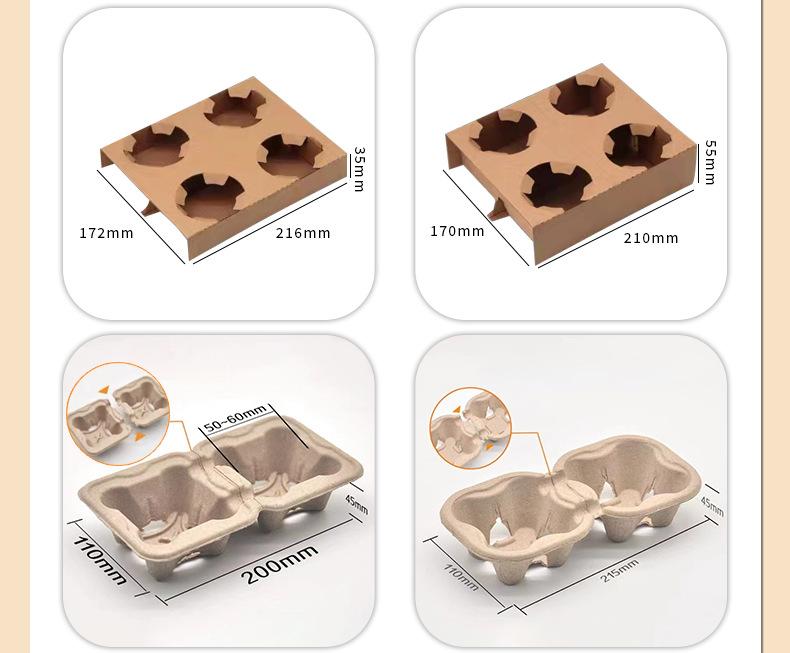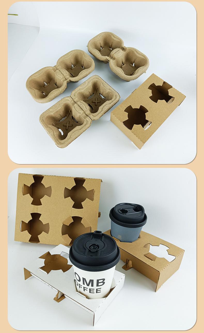 Portavasos desechable de pulpa corrugada degradable, espesado, para bebidas, individual, doble y cuatro tazas, disponible en stock.