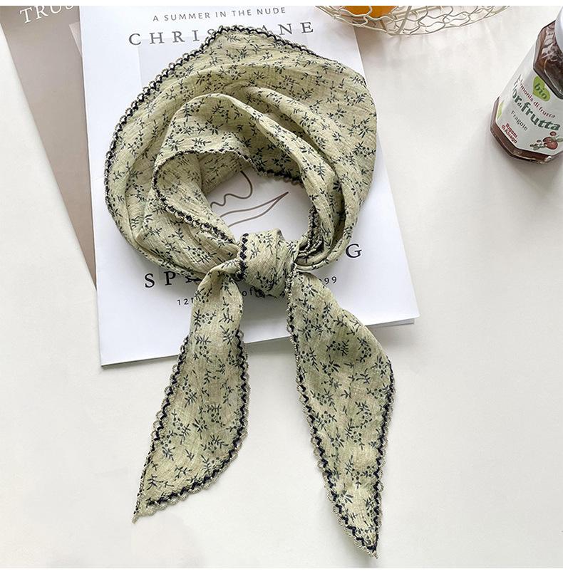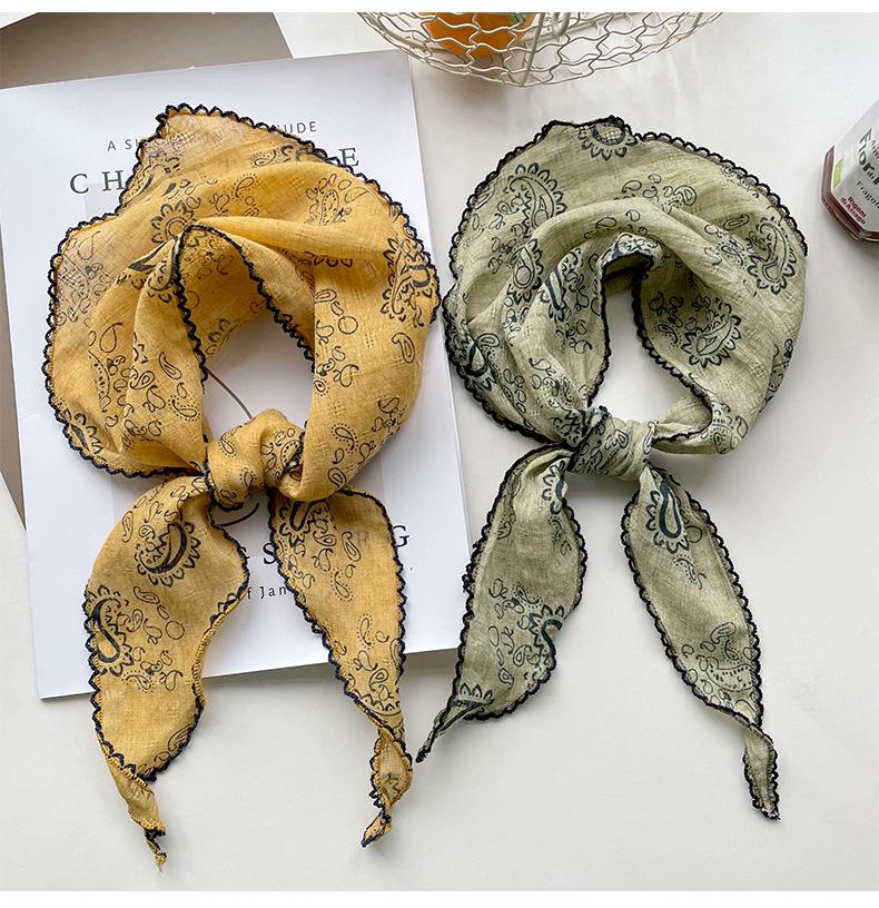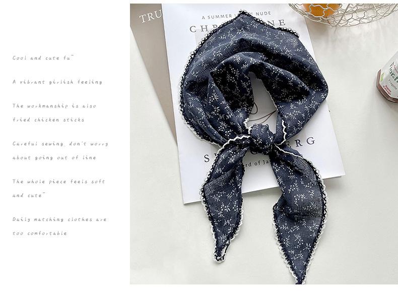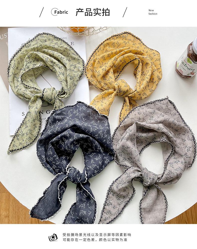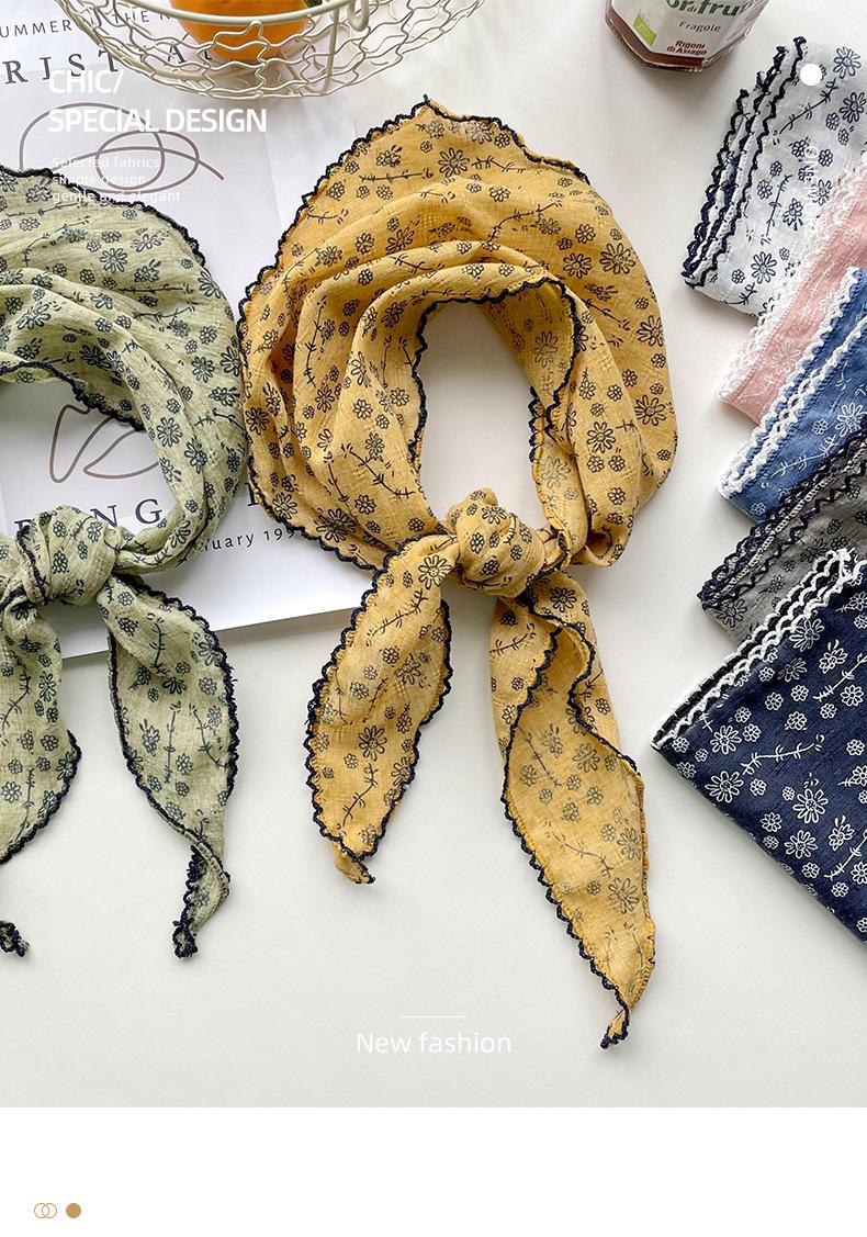 Bufanda triangular vintage de algodón y lino con diseño floral artístico para mujer, primavera y verano, estilo coreano, combina con todo, protección para el cuello, bufanda pequeña fina decorativa de seda.