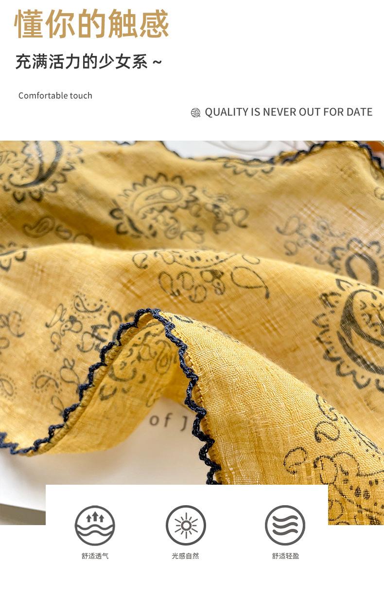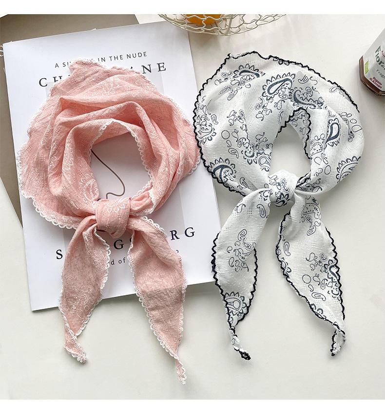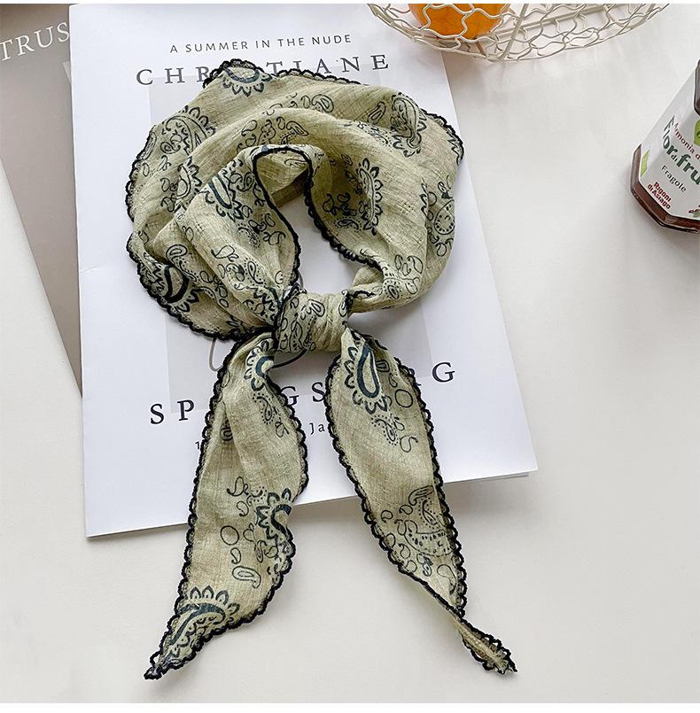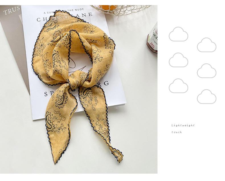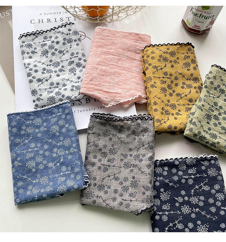 Bufanda triangular vintage de algodón y lino con diseño floral artístico para mujer, primavera y verano, estilo coreano, combina con todo, protección para el cuello, bufanda pequeña fina decorativa de seda.