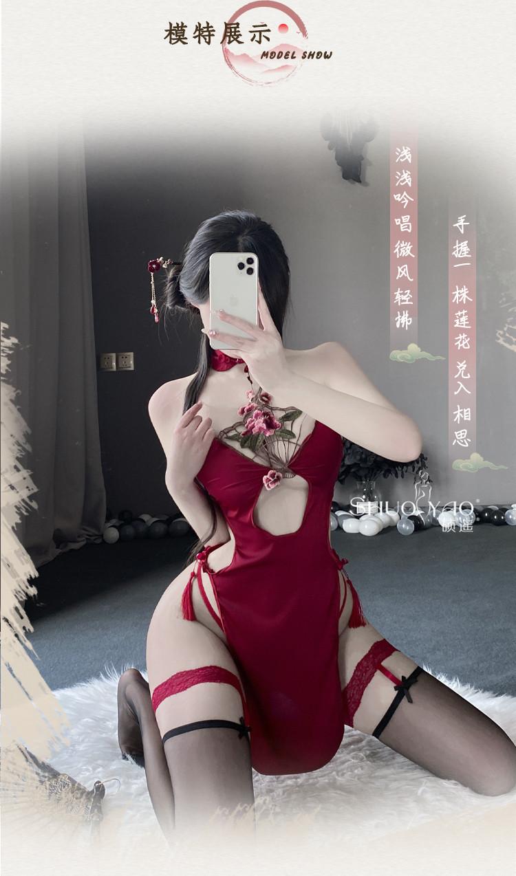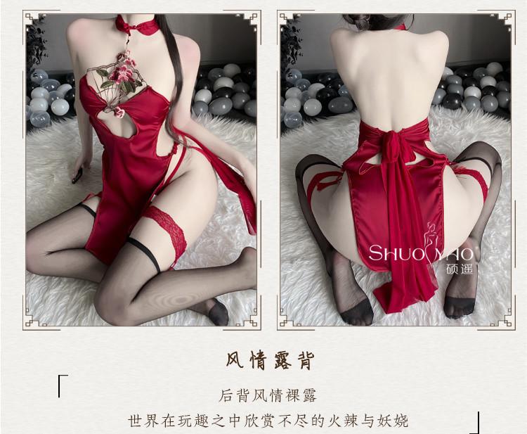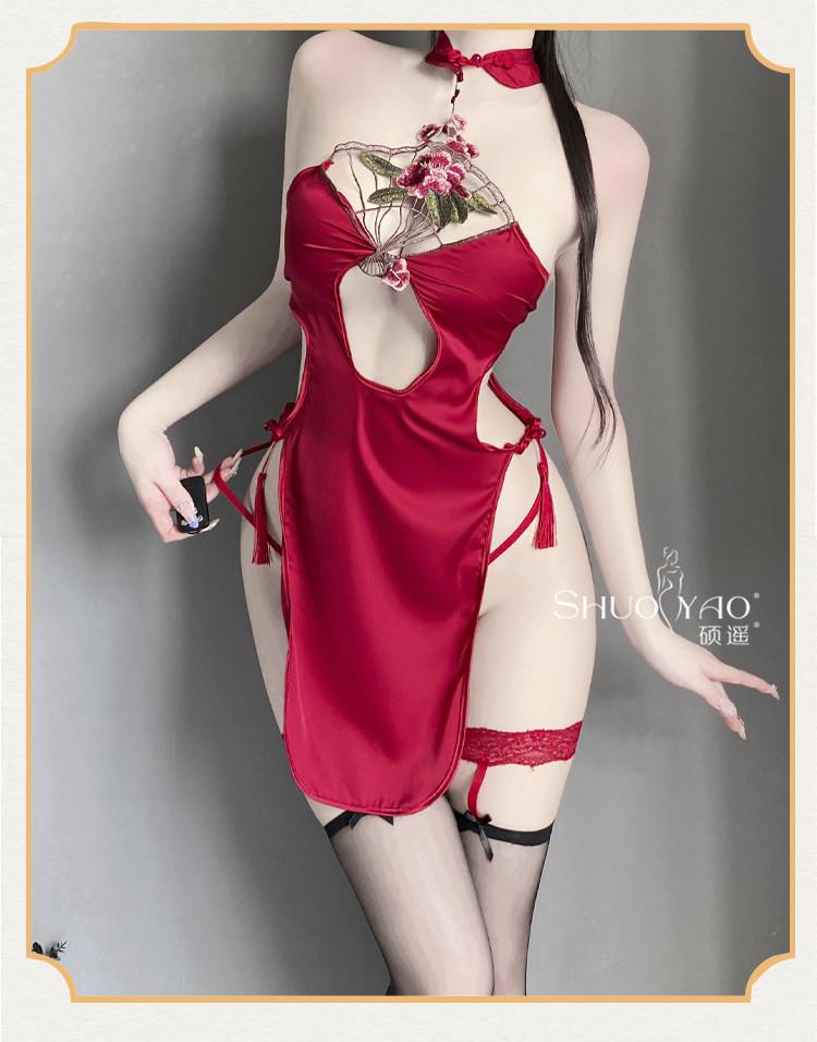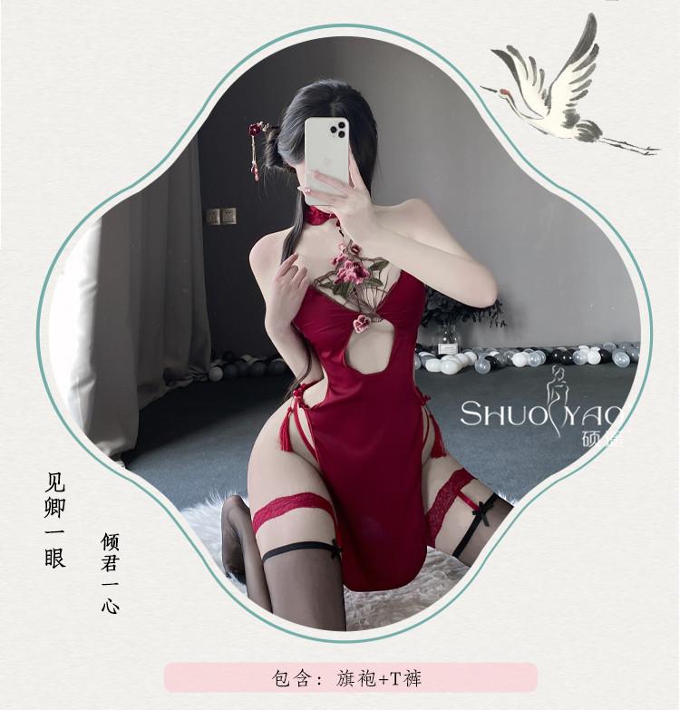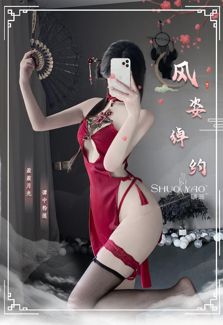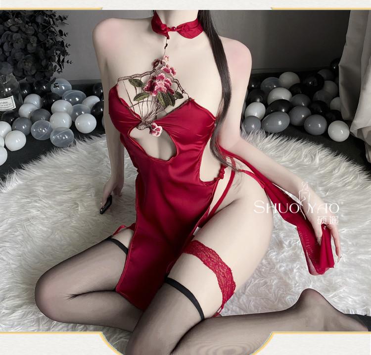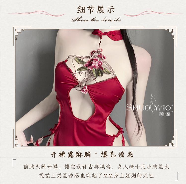 Shuo Yao lencería sexy cuello sexy hueco antiguo cheongsam de abertura alta uniforme tentación pasión traje femenino 280