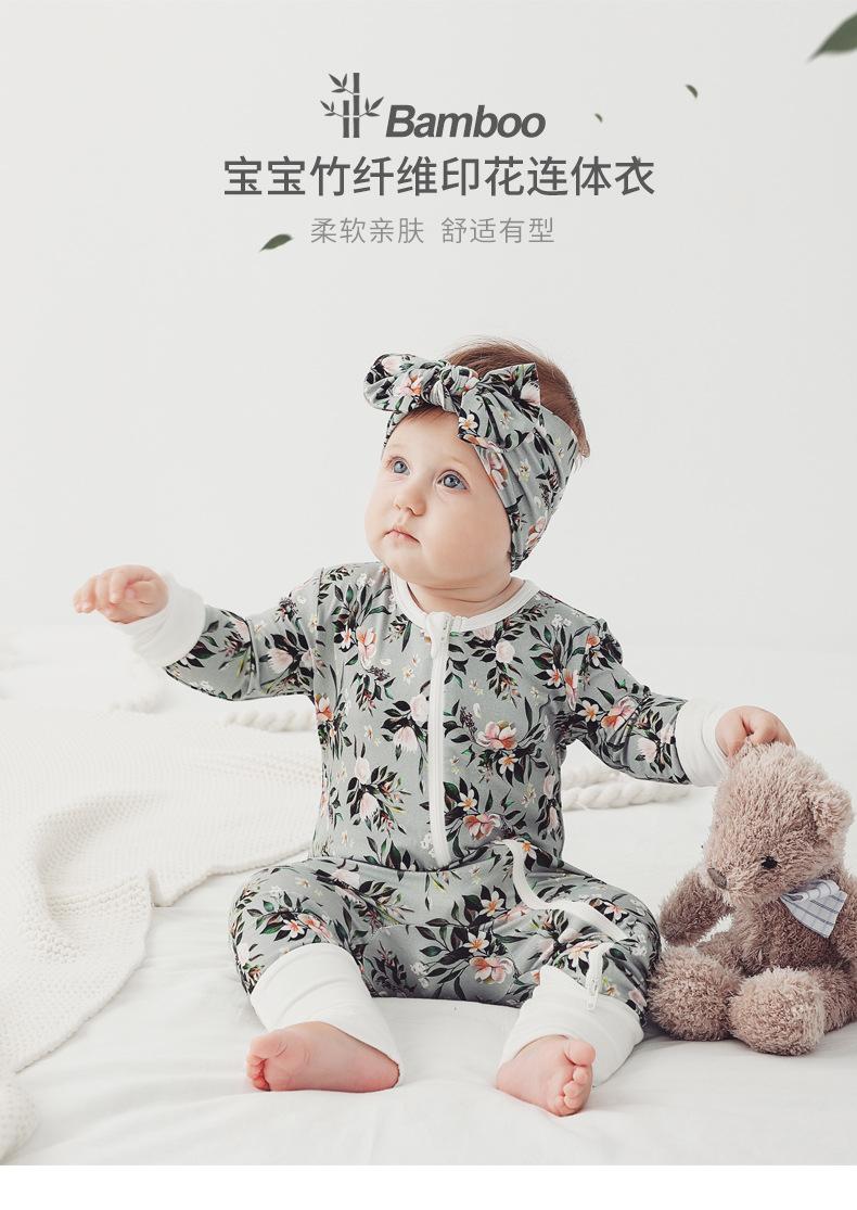 Ropa de bebé infantil de comercio exterior, primavera y otoño, ropa de bebé recién nacido de primavera, pijamas con cremallera de fibra de bambú