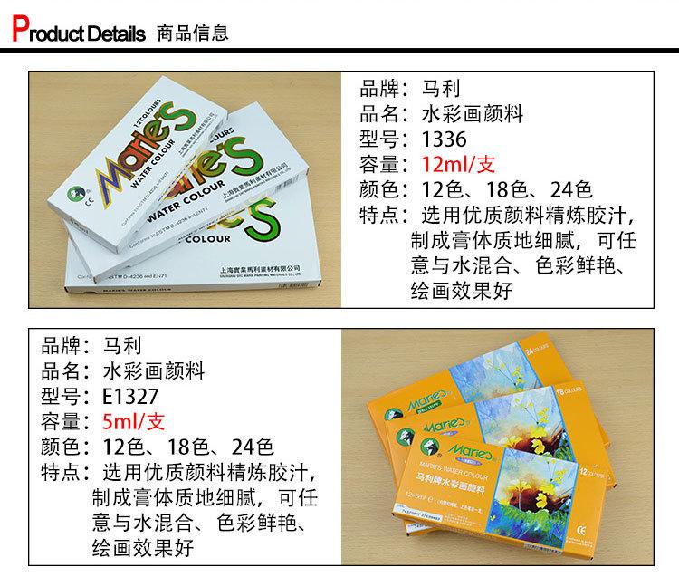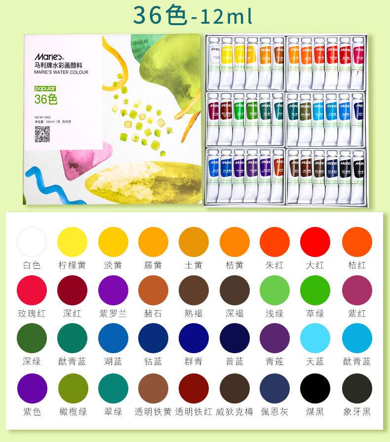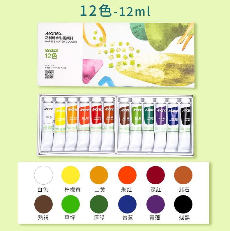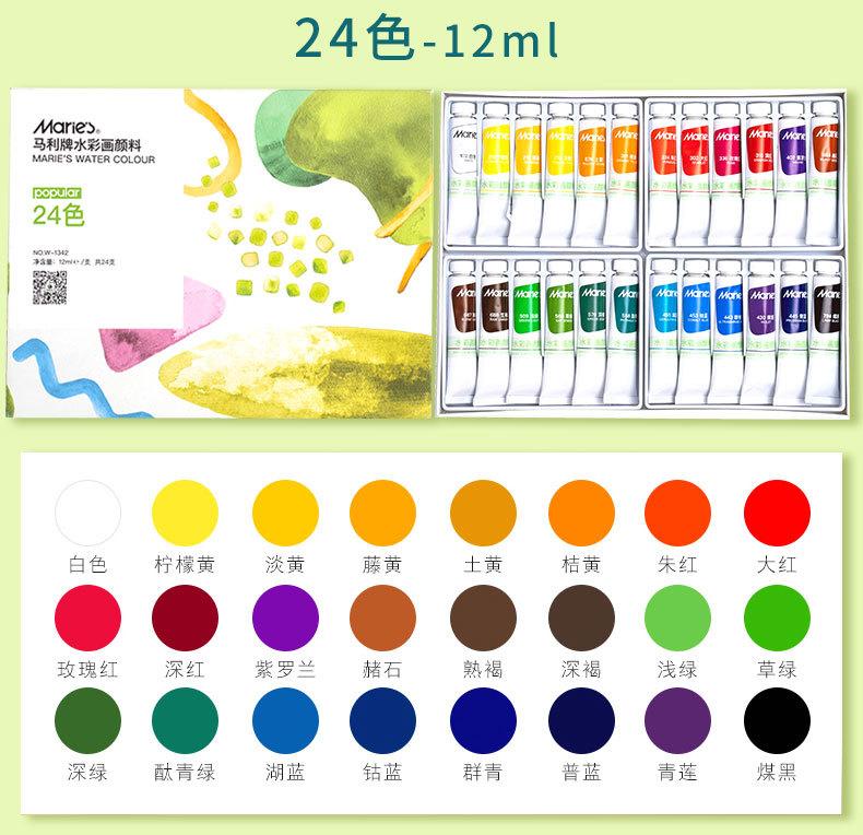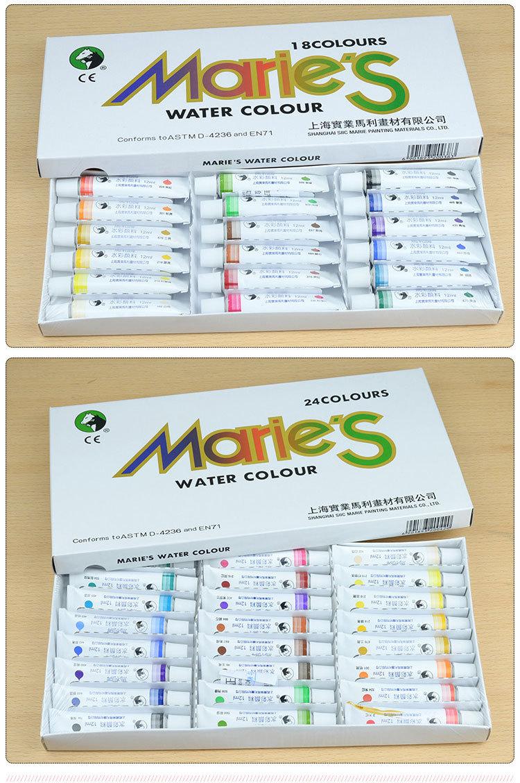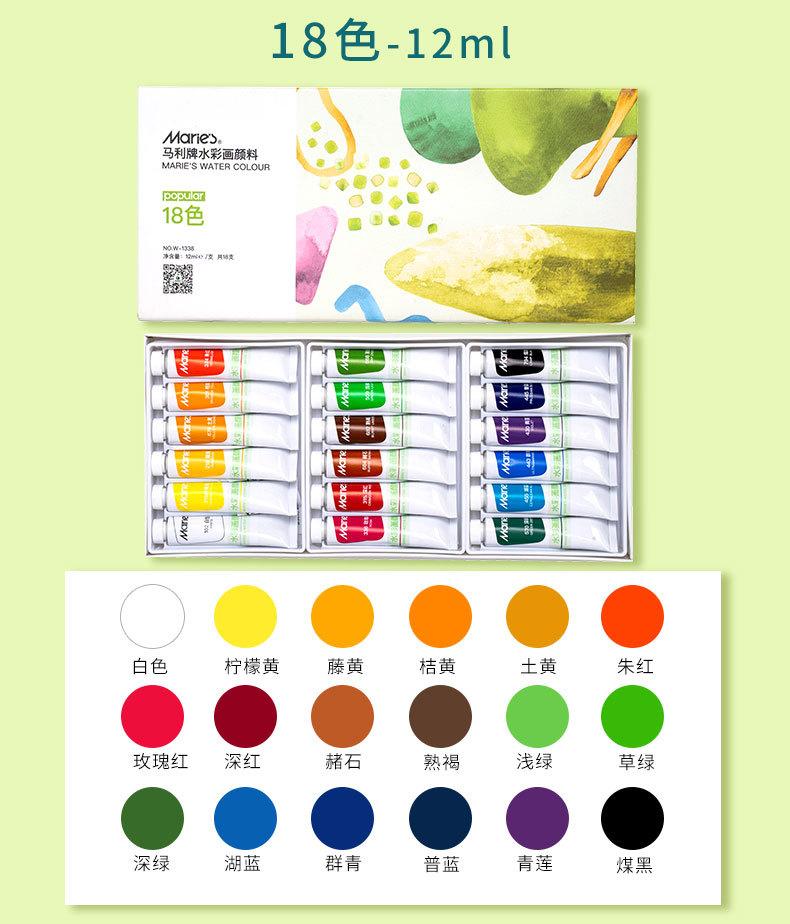 Pintura de acuarela de 12 colores Marley【Especificaciones】: 12 colores * 12ML 18 colores * 12ML 24 colores * 12ML 12 colores * 5ML 18 colores * 5ML 24 colores * 5ML