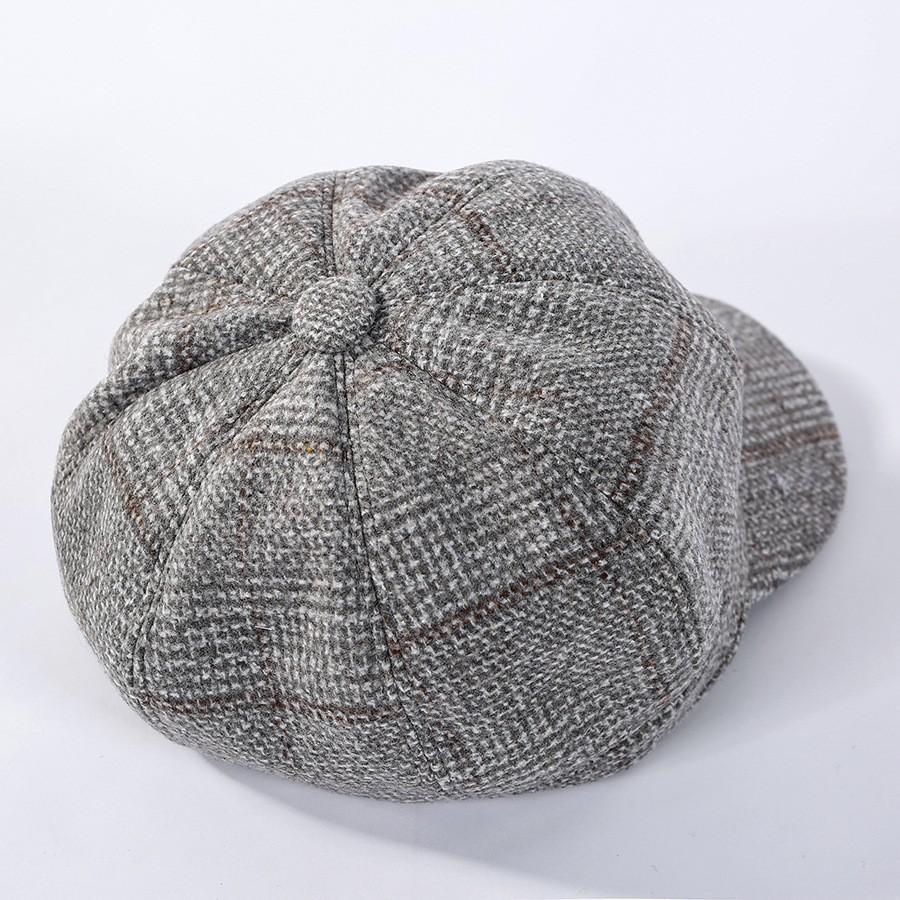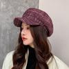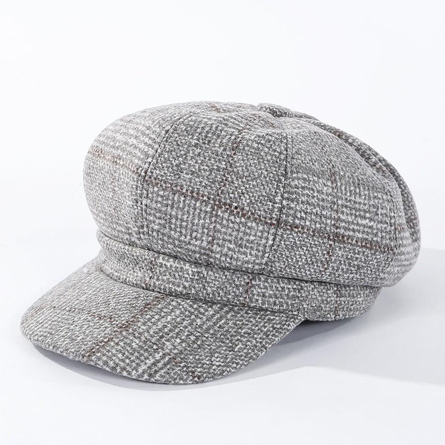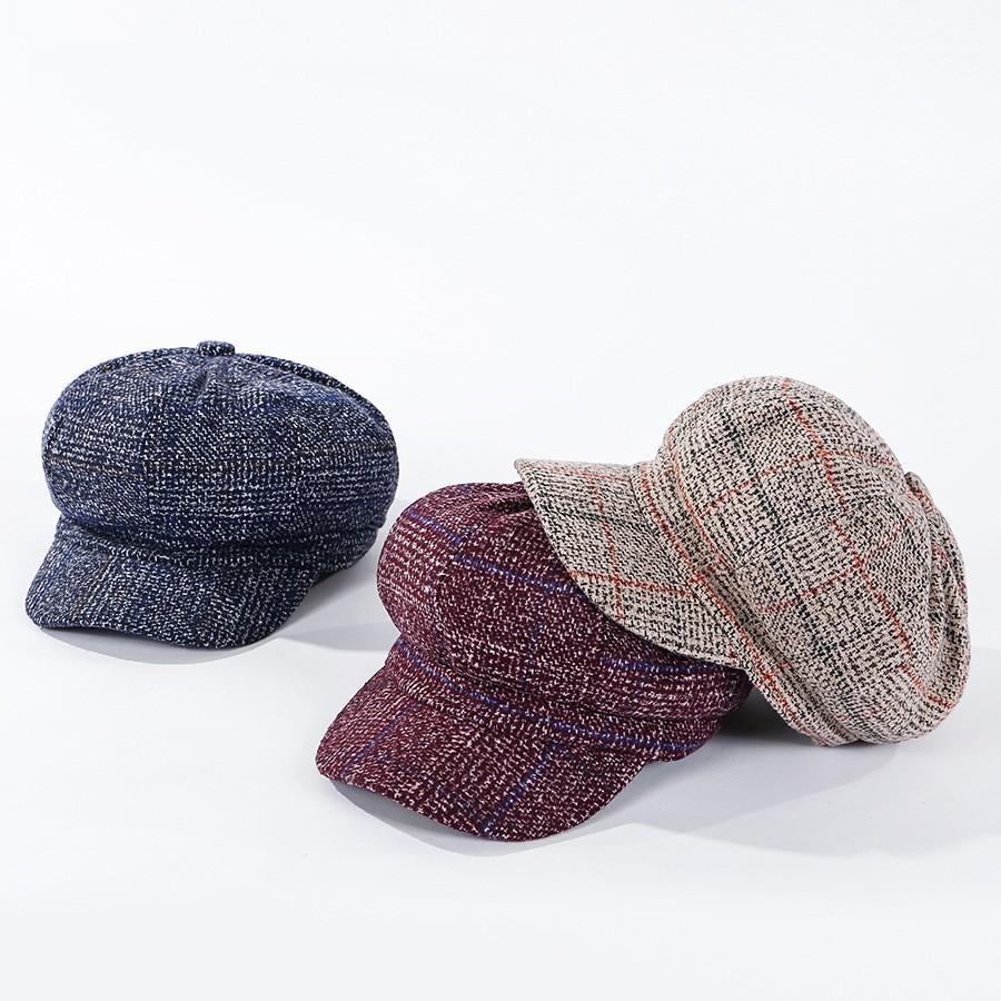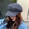Gorra octogonal de lana a cuadros gruesa de estilo coreano para mujer, boina informal de moda de estilo coreano, protección para las orejas, gorra de pintor británica cálida