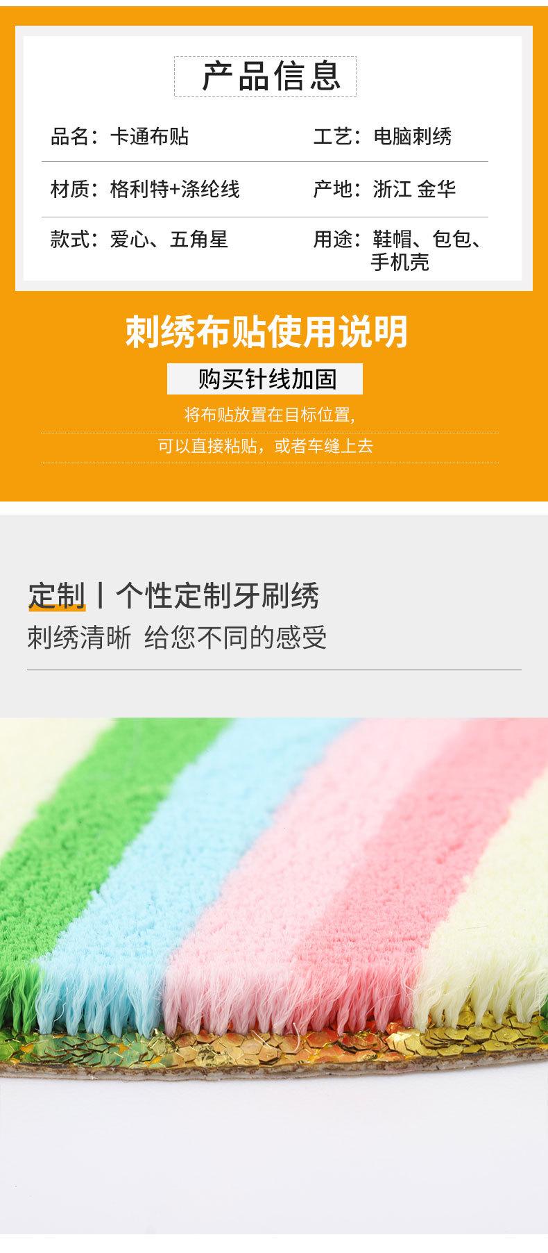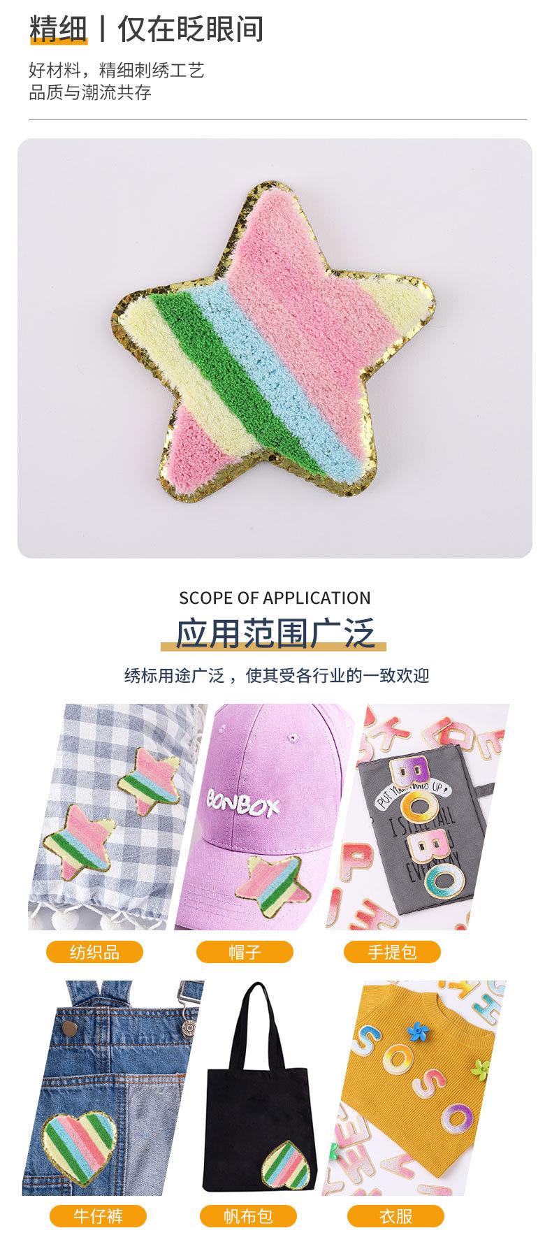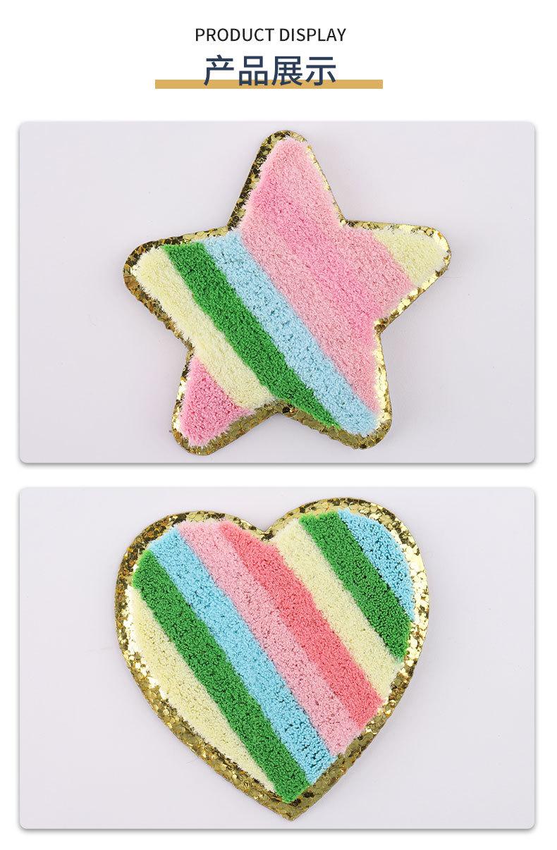 Pegatinas de tela bordadas con dibujos animados de fábrica, en stock. Parche de dibujos animados con forma de estrella y corazón, accesorios de ropa para niños, pegatinas de tela bordadas.