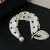 Pañuelo de Seda Pequeño para Mujer Collar Guofeng Hebilla Magnética de Perla Primavera Verano Otoño Pañuelo Largo Decorativo Fino Pañuelo de Seda Imitación Combinable