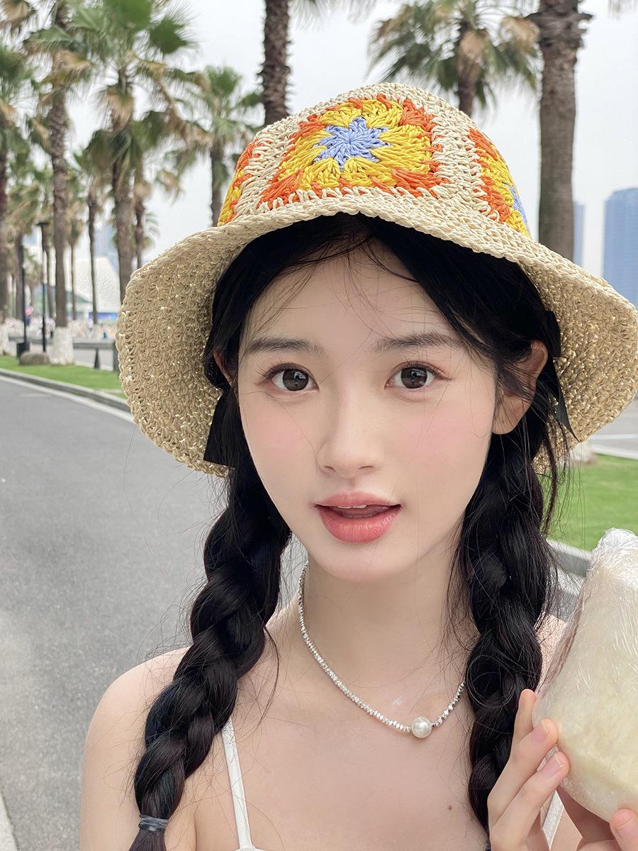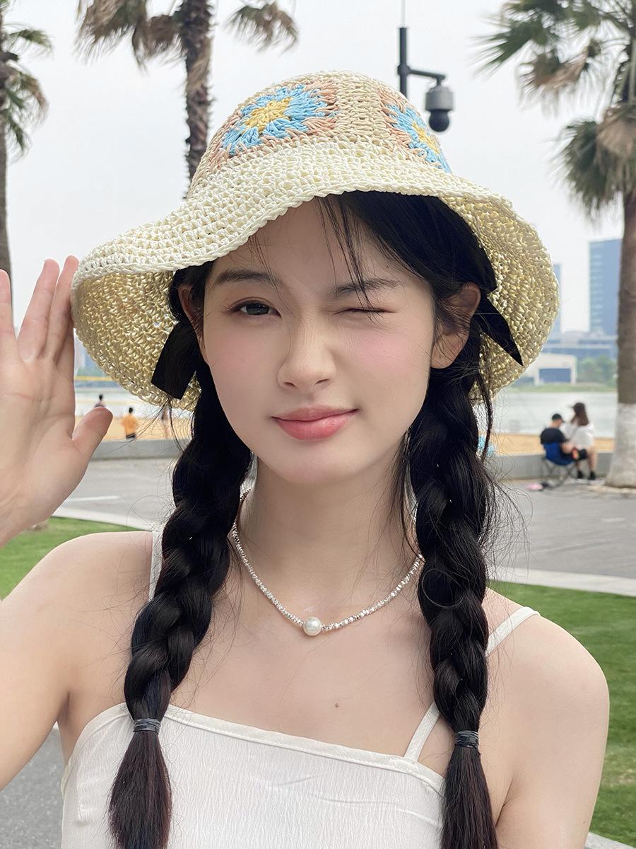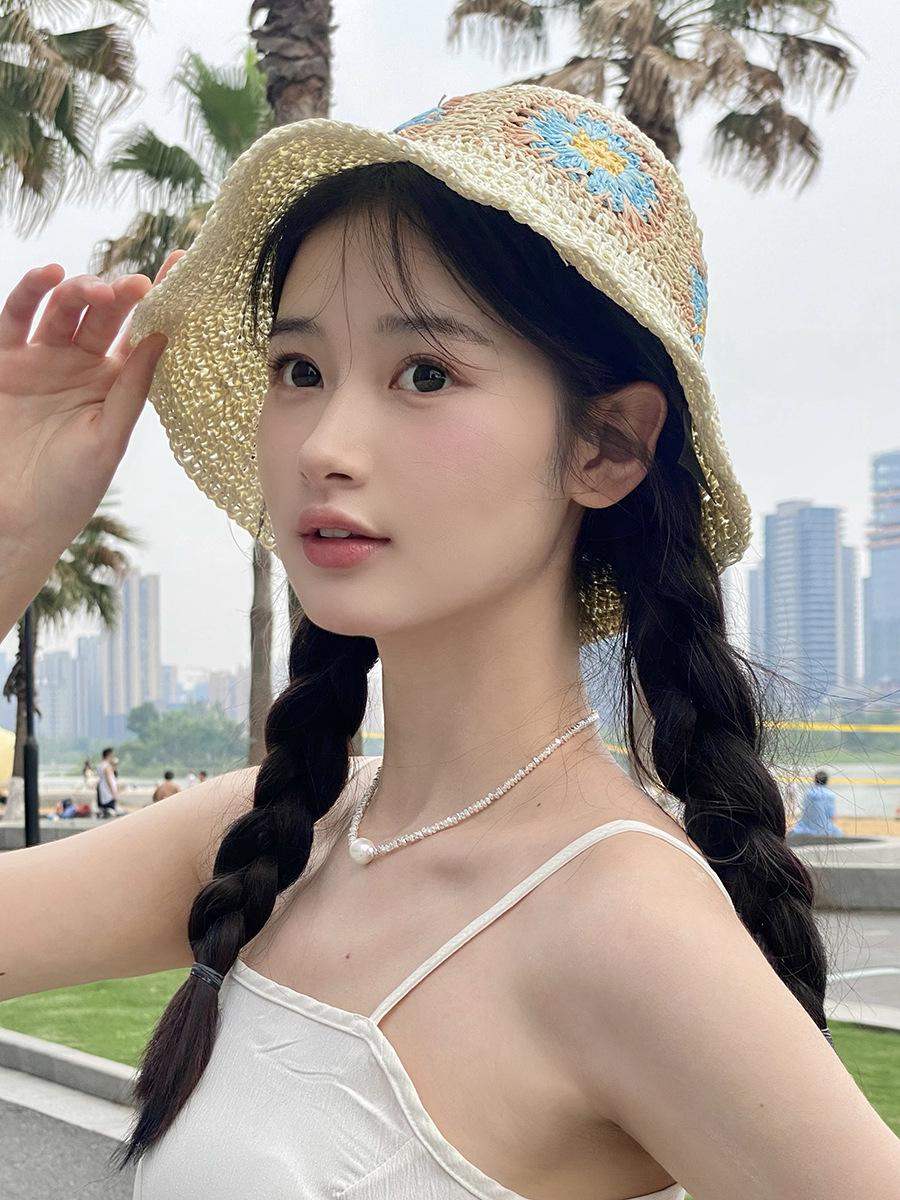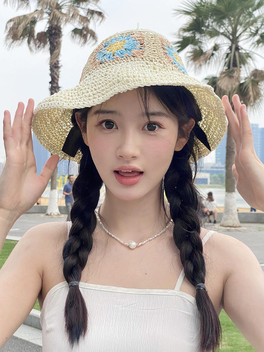 | Xiaohongshu recomienda diadema de seda helada a juego de colores sombrero de copa hueco versión coreana de la moda sombrero para el sol que cubre la cara sombrero para el sol de estudiante |