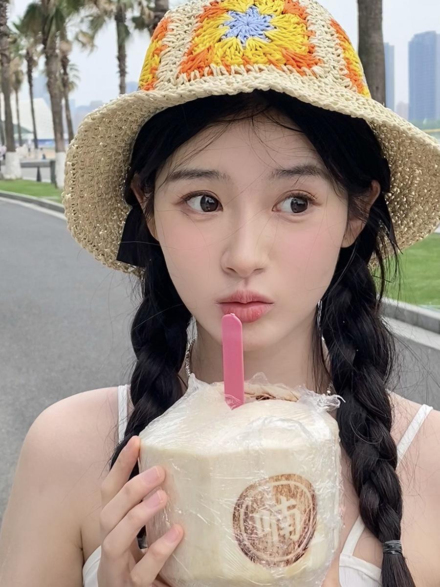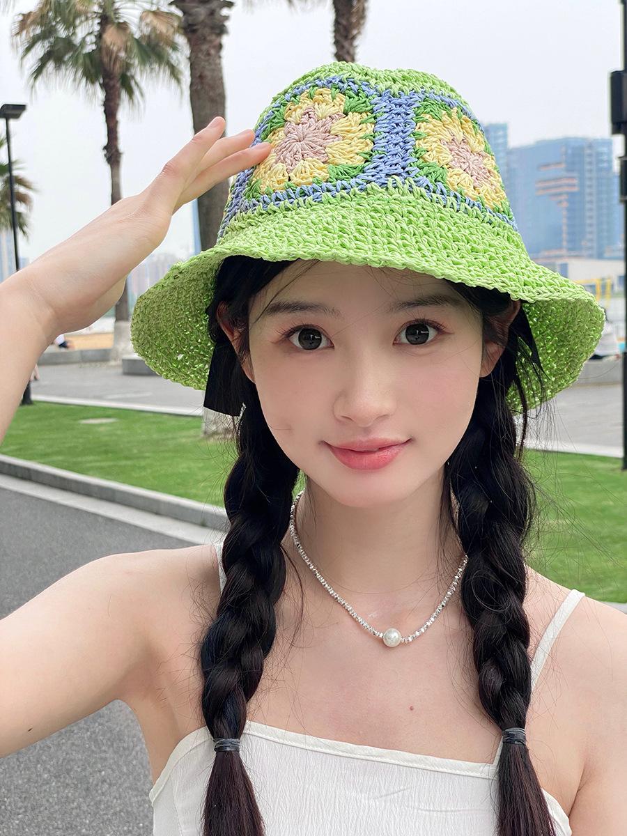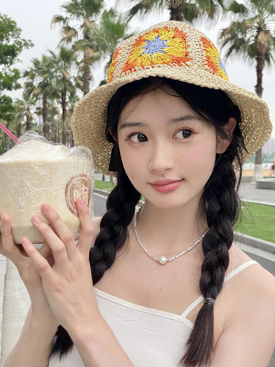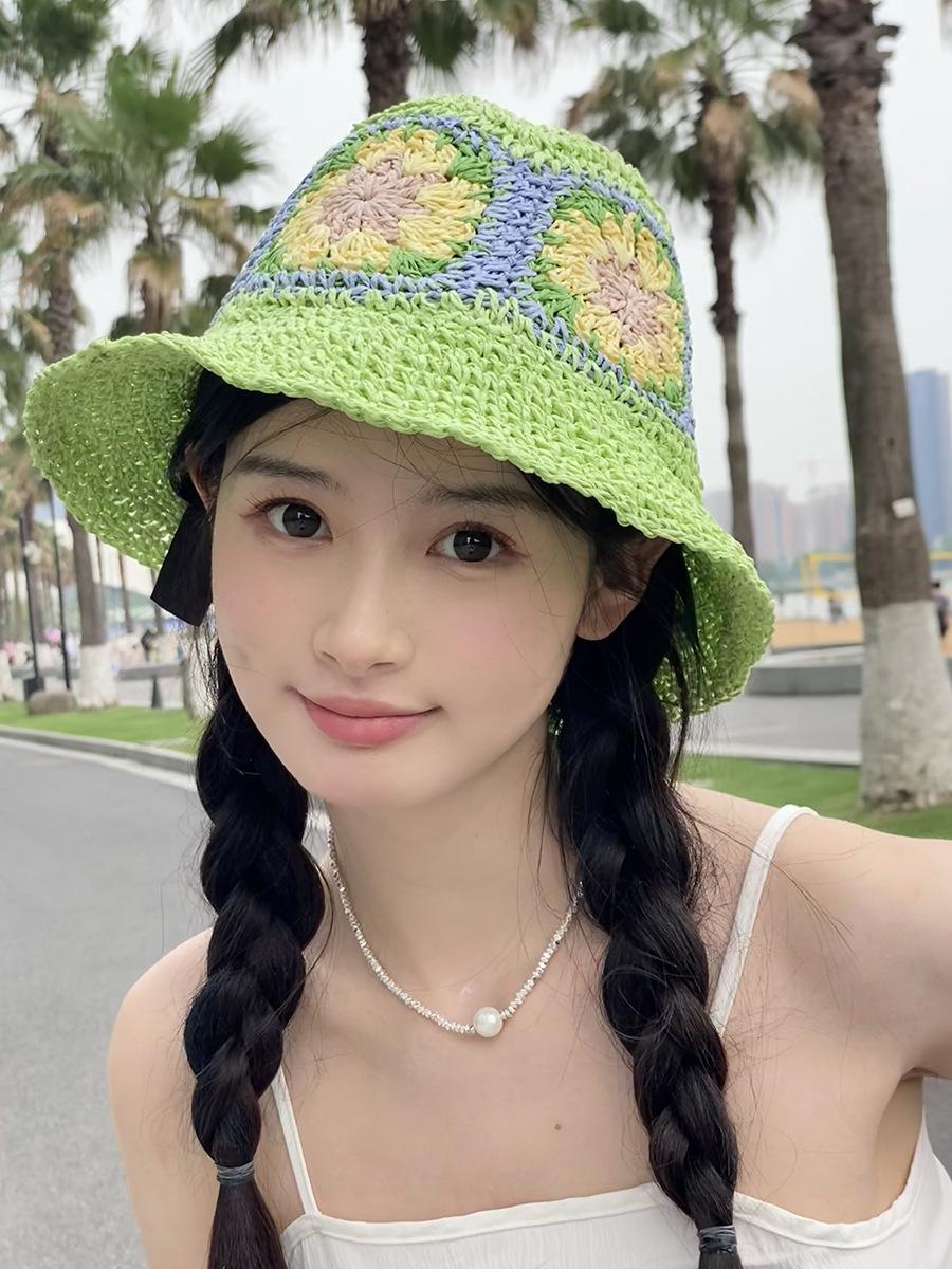 | Xiaohongshu recomienda diadema de seda helada a juego de colores sombrero de copa hueco versión coreana de la moda sombrero para el sol que cubre la cara sombrero para el sol de estudiante |
