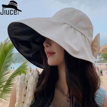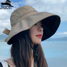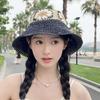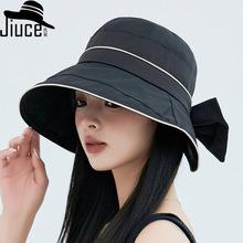 | Sombrero de sol de primavera y verano para mujer Sombrero de pescador coreano con lazo de combinación de colores nuevos ala grande protección solar anti-ultravioleta sombrero de sol |